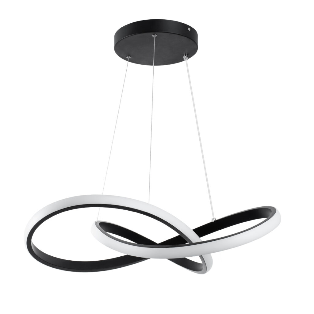 GloboStar® DEXTER 61049 Κρεμαστό Φωτιστικό Οροφής Design LED CCT 72W 8064lm 300° AC 220-240V – Εναλλαγή Φωτισμού μέσω Τηλεχειριστηρίου All In One Ψυχρό 6000k+Φυσικό 4500k+Θερμό 2700k Dimmable Φ56cm – Μαύρο – 3 Years Warranty