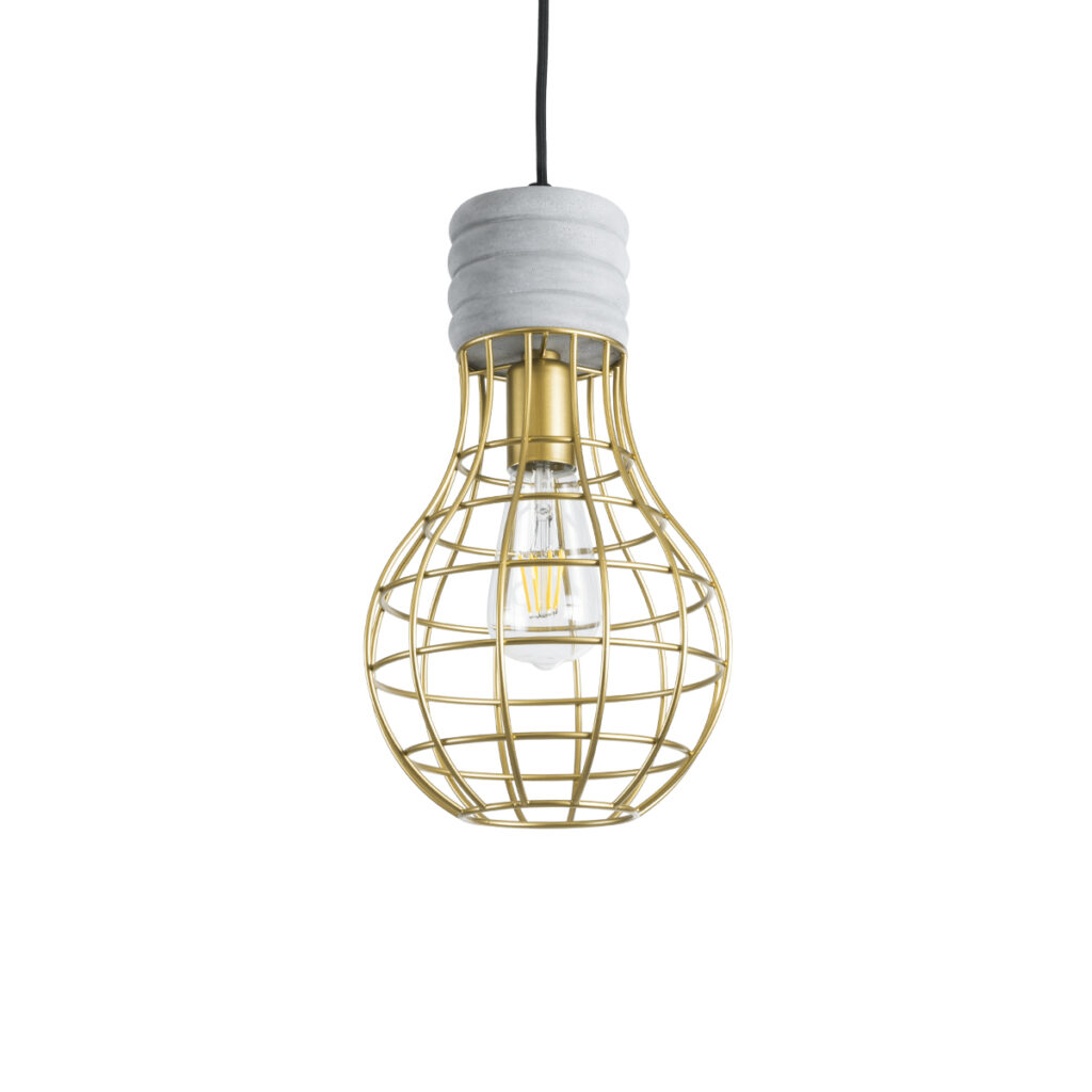 GloboStar® DURANT 01325 Μοντέρνο Κρεμαστό Φωτιστικό Πλέγμα Μονόφωτο 1 x E27 IP20 Γκρι Τσιμέντο με Χρυσό Μέταλλο – Μ20 x Π20 x Υ35cm