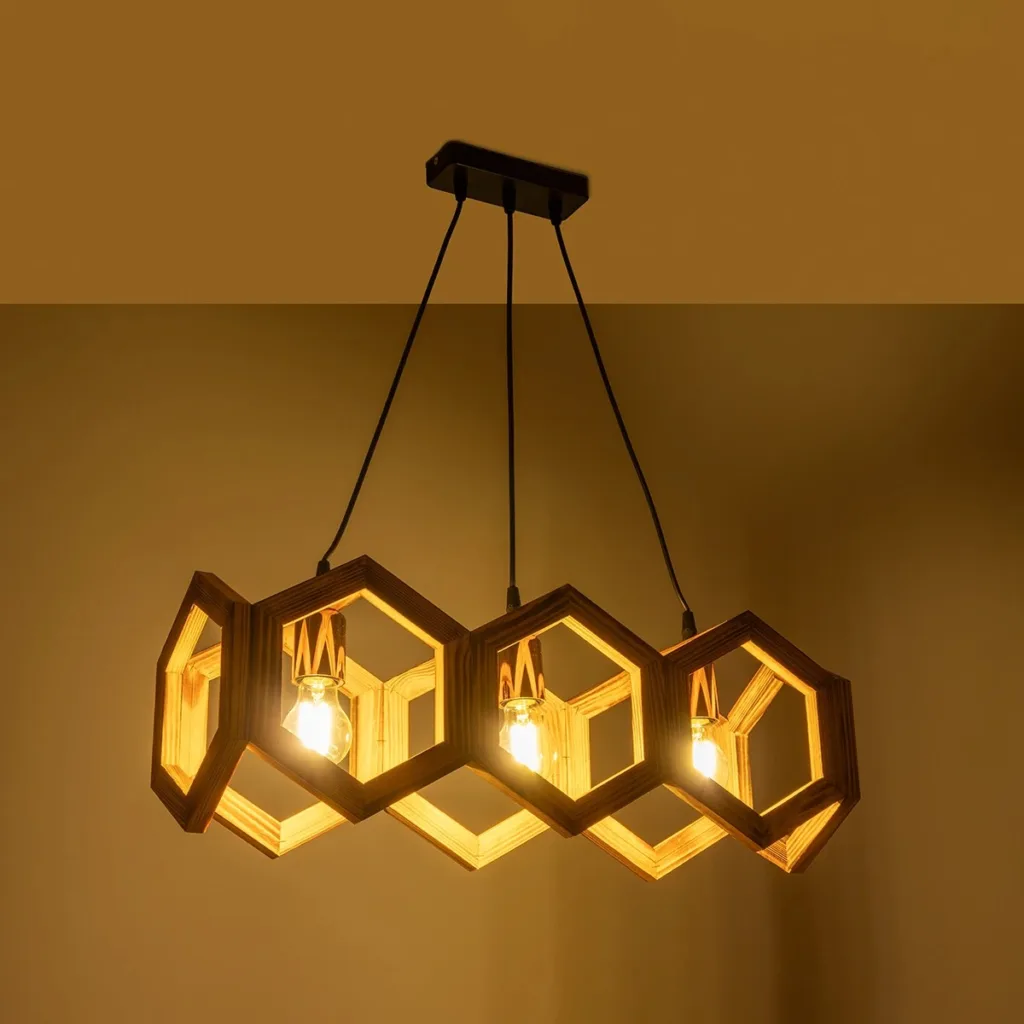 GloboStar® DRURI 203-0256 Vintage Κρεμαστό Φωτιστικό Γεωμετρικό Σχήμα Τρίφωτο 3 x E27 Μπεζ Ξύλο – Μ38 x Π38 x Υ120cm