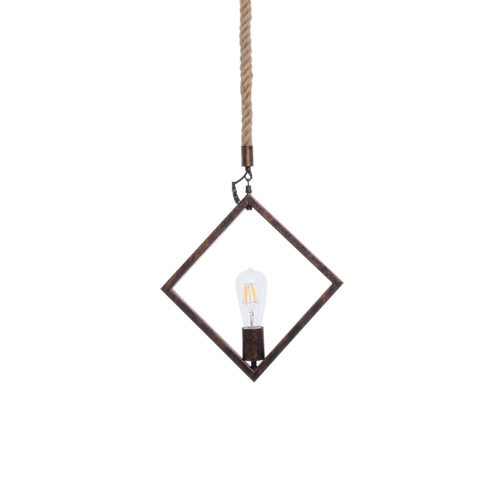 GloboStar® ALCO 01023 Vintage Κρεμαστό Φωτιστικό Ανάρτηση Μονόφωτο 1 x E27 IP20 Χάλκινο Μέταλλο με Μπεζ Σχοινί – Μ35 x Π3 x Υ35cm