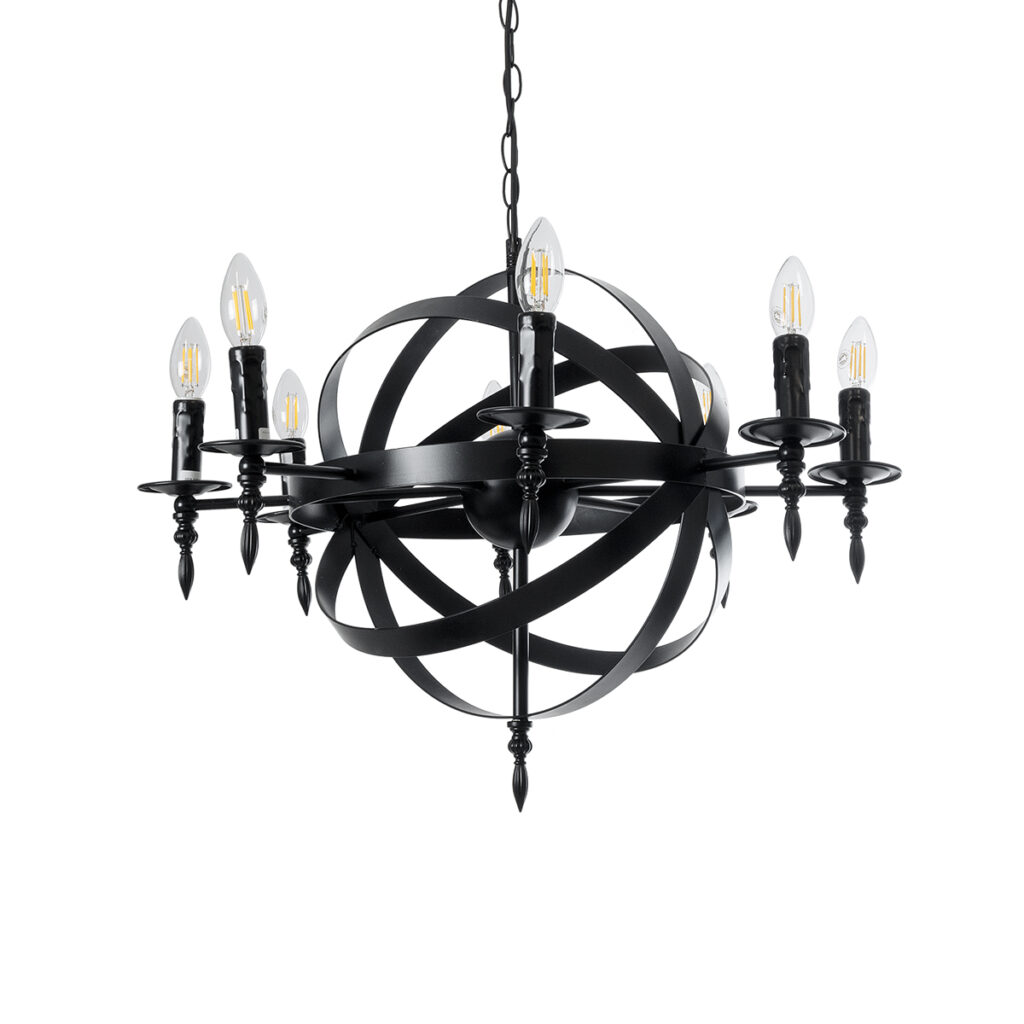 GloboStar® ESTELLE 01003 Vintage Κρεμαστό Φωτιστικό Πλέγμα Πολύφωτο 8 x E14 IP20 Μαύρο Μέταλλο – Μ65 x Π65 x Y50cm
