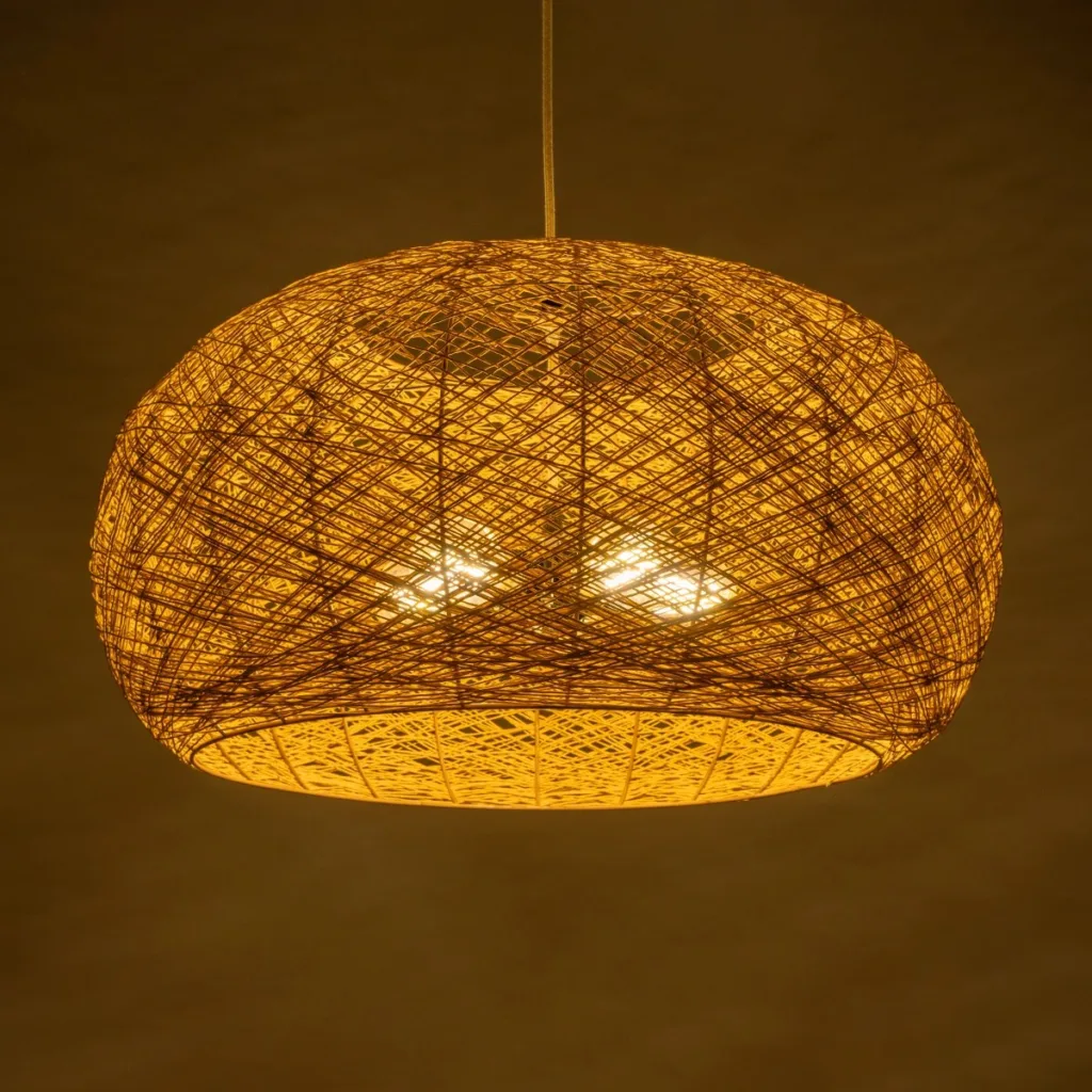 GloboStar® FIJI INCASS 01628 Vintage Κρεμαστό Φωτιστικό Καμπάνα Πολύφωτο 5 x E27 IP20 Μπέζ Rattan – Μ60 x Π60 x Υ29cm