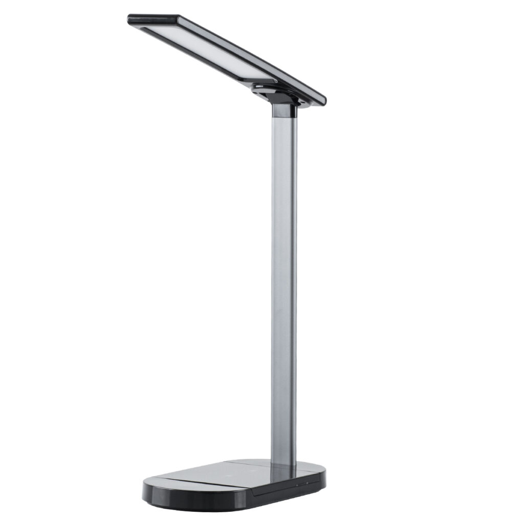 GloboStar® FIARIA 76530 Μοντέρνο Επιτραπέζιο Φωτιστικό Πορτατίφ LED 5W 500lm 180° DC 5V – με Ασύρματη Φόρτιση – Wireless Charger – Διακόπτη Αφής – CCT Θερμό Λευκό 2700K – Φυσικό Λευκό 4500K – Ψυχρό Λευκό 6000K Dimmable – Μ25 x Π10.5 x Υ35.5 – Μαύρο