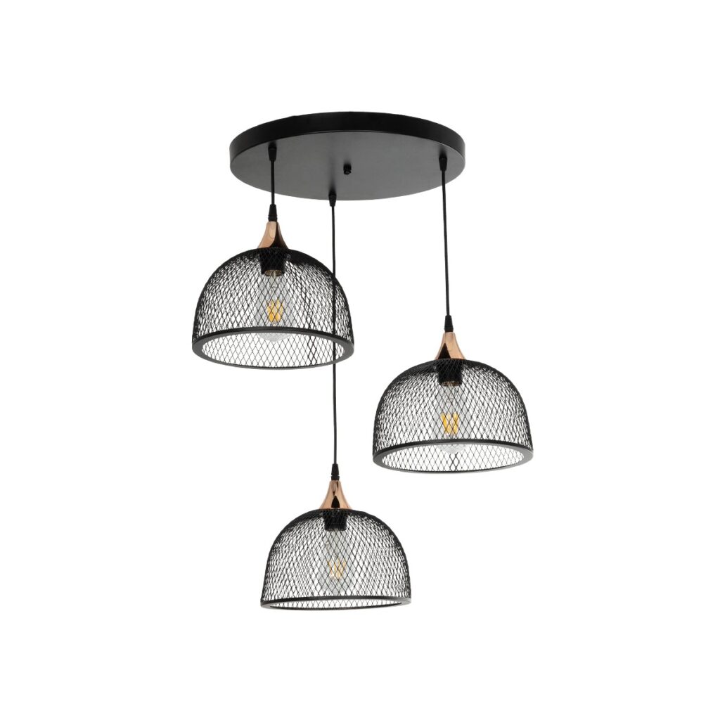 GloboStar® FLICKA 201-0113 Vintage Κρεμαστό Φωτιστικό Πλέγμα Τρίφωτο 3 x E27 IP20 Μαύρο Μέταλλο- Μ40 x Π40 x Υ70cm