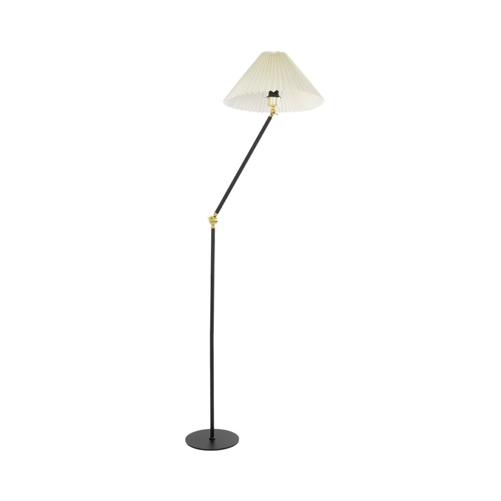 GloboStar® FLY 204-0127 Μοντέρνο Eπιδαπέδιο Φωτιστικό Μονόφωτο 1 x E27 IP20 Μαύρο & Χρυσό Μέταλλο με Μπεζ Ύφασμα – Μ38 x Π38 x Υ155cm