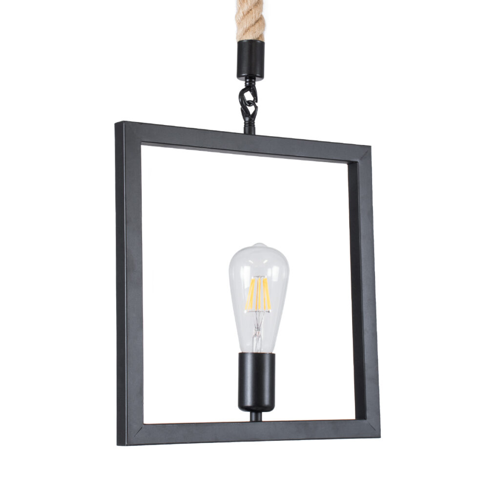 GloboStar® FRAISE 01077 Vintage Κρεμαστό Φωτιστικό Ανάρτηση Μονόφωτο 1 x E27 IP20 Μαύρο Μέταλλο με Μπεζ Σχοινί – Μ32 x Π4 x Υ32cm