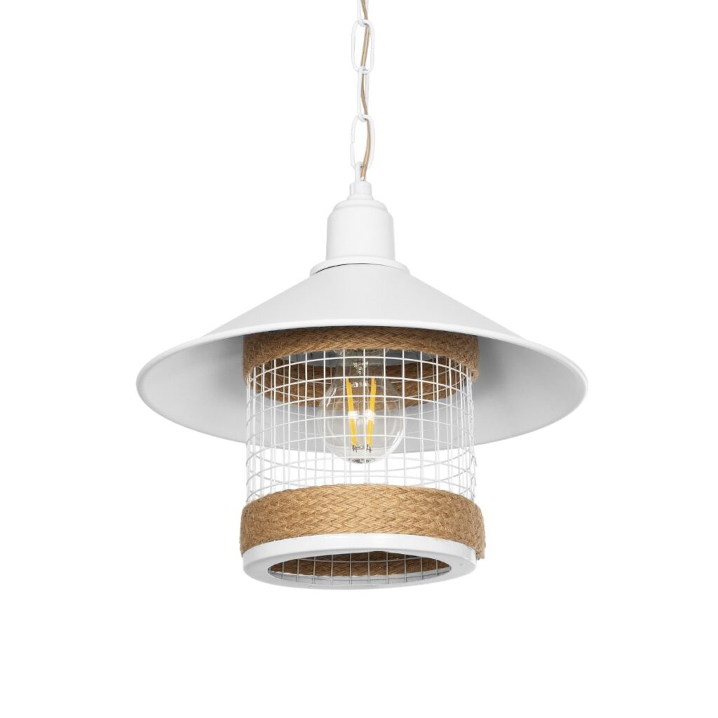 GloboStar® GLORA 201-0089 Vintage Κρεμαστό Φωτιστικό Καμπάνα Μονόφωτο 1 x E27 IP20 Λευκο Μέταλλο – Μ30 x Π30 x Υ54cm