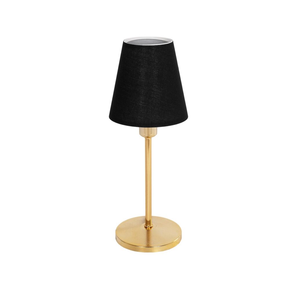 GloboStar® GLOSSY 204-0056 Μοντέρνο Eπιτραπέζιο Φωτιστικό Μονόφωτο 1 x E27 IP20 Χρυσό Μέταλλο με Μαύρο Ύφασμα – Μ13 x Π13 x Υ37cm