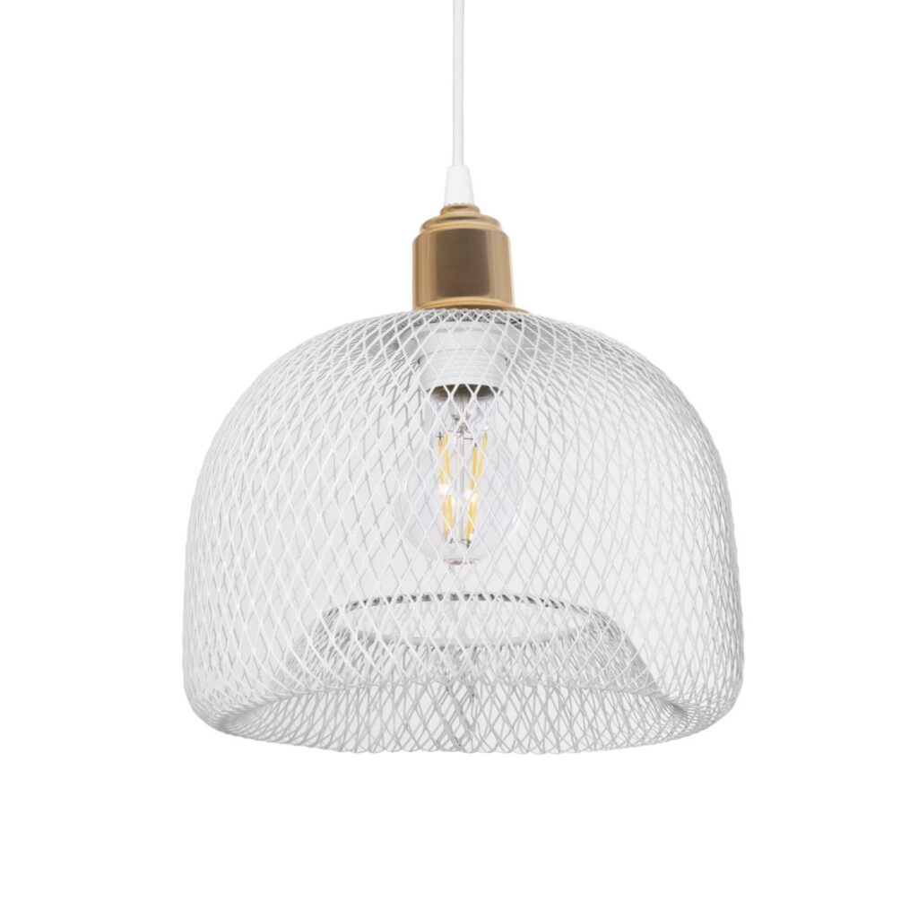 GloboStar® GLOZIA 201-0017 Μοντέρνο Κρεμαστό Φωτιστικό Πλέγμα Μονόφωτο 1 x E27 IP20 Λευκό & Χρυσό Μέταλλο – Μ26x Π26 x Υ70cm