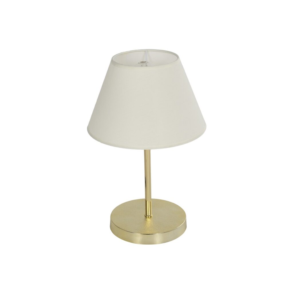 GloboStar® GLOSSY 204-0078 Μοντέρνο Eπιτραπέζιο Φωτιστικό Μονόφωτο 1 x E27 IP20 Χρυσό Μέταλλο με Μπεζ Ύφασμα – Μ15 x Π15 x Υ39cm