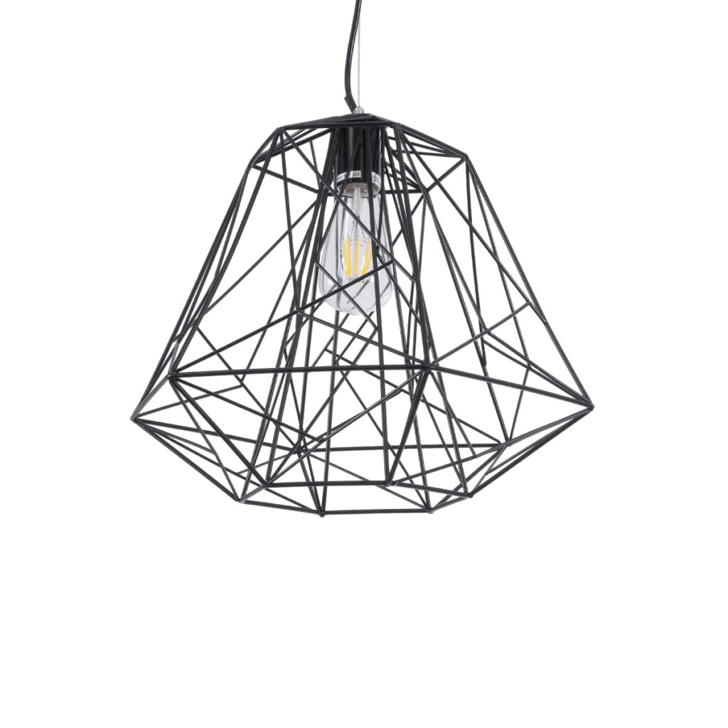 GloboStar® GRID 01022 Vintage Kρεμαστό Φωτιστικό Πλέγμα Μονόφωτο 1 x E27 IP20 Μαύρο Μέταλλο – Μ40 x Π40 x Υ33cm