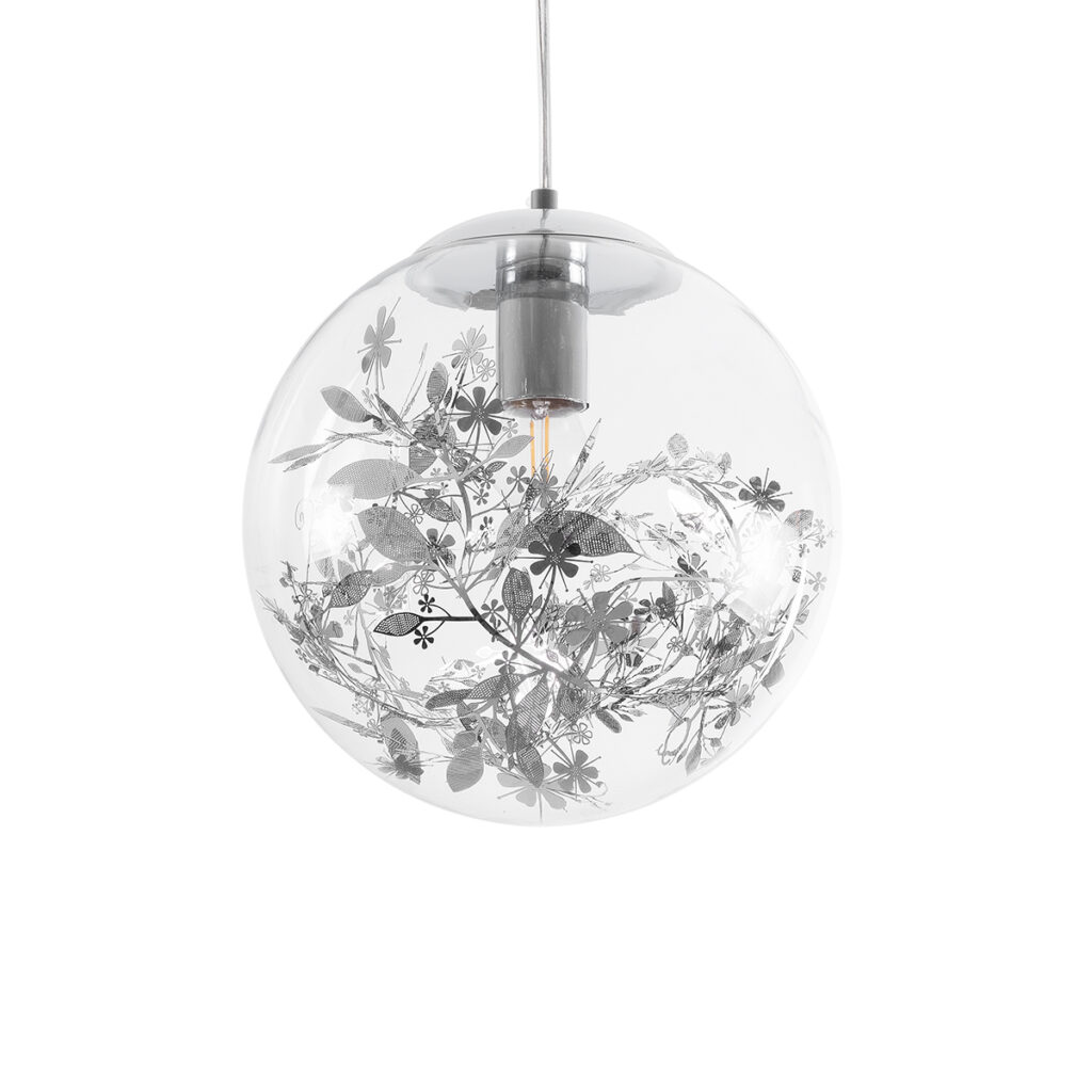 GloboStar® HARPER 01510 Μοντέρνο Κρεμαστό Φωτιστικό Μπάλα Μονόφωτο 1 x E27 IP20 Διάφανο Γυαλί με Ασημί Μέταλλο – Μ25 x Π25 x Υ30cm