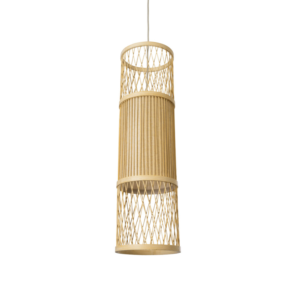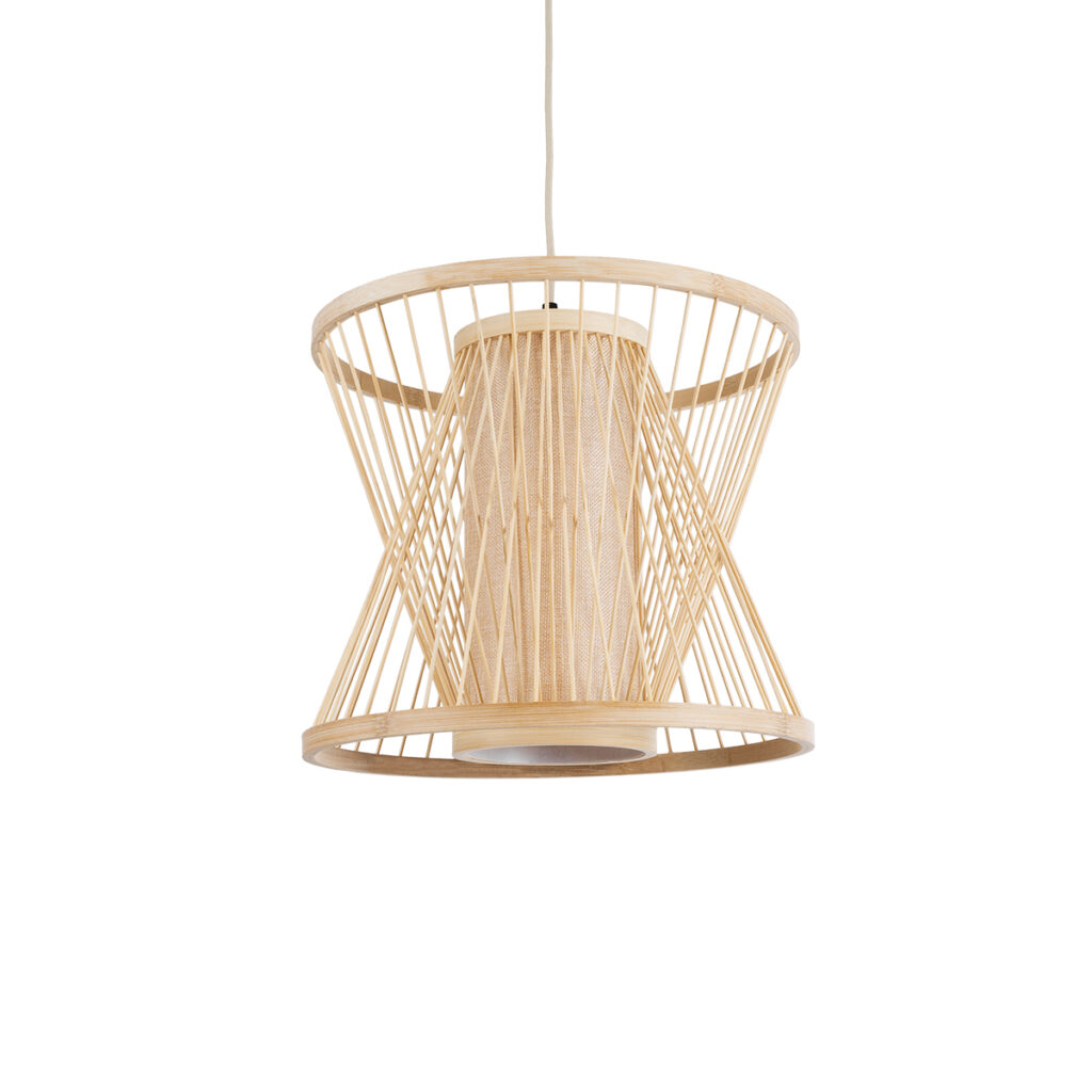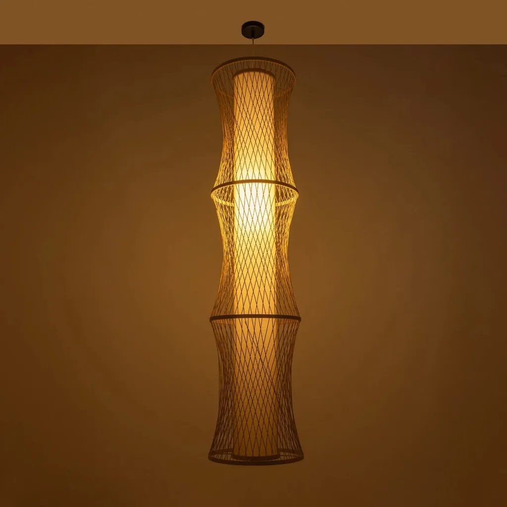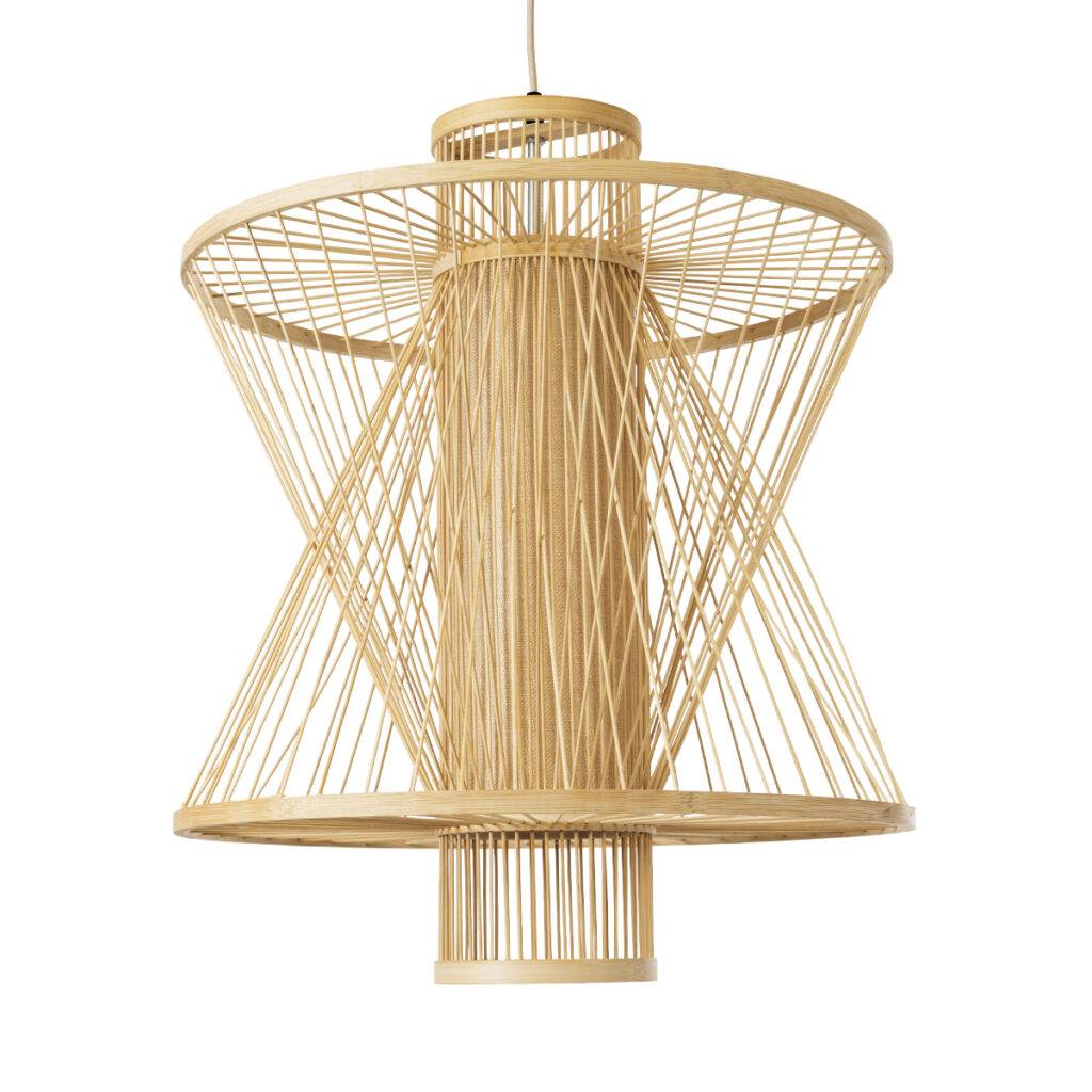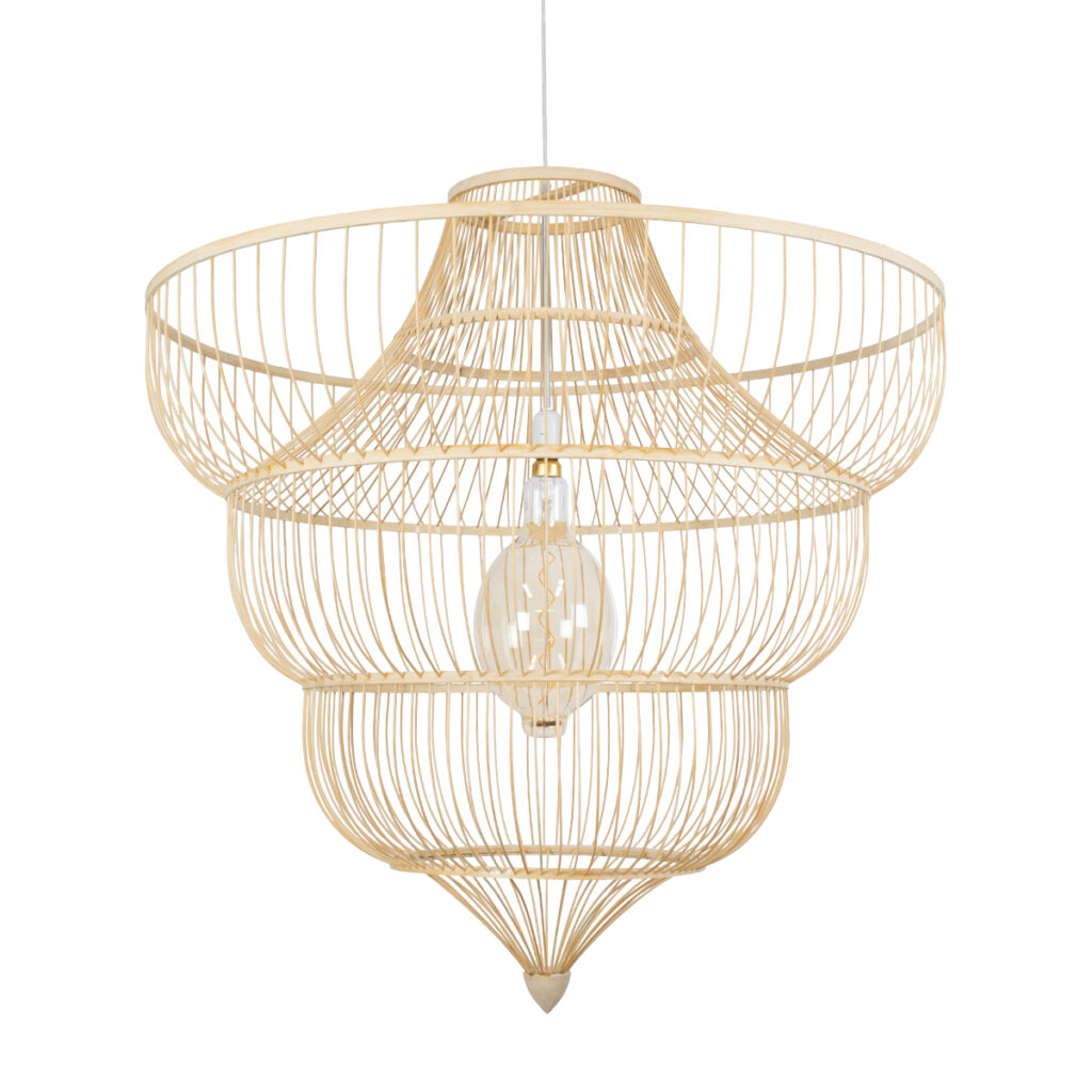GloboStar® HIBISCUS 01783 Boho Κρεμαστό Φωτιστικό Πλέγμα Μονόφωτο 1 x E27 IP20 Μπεζ Ξύλο – Μ35 x Π35 x Υ150cm