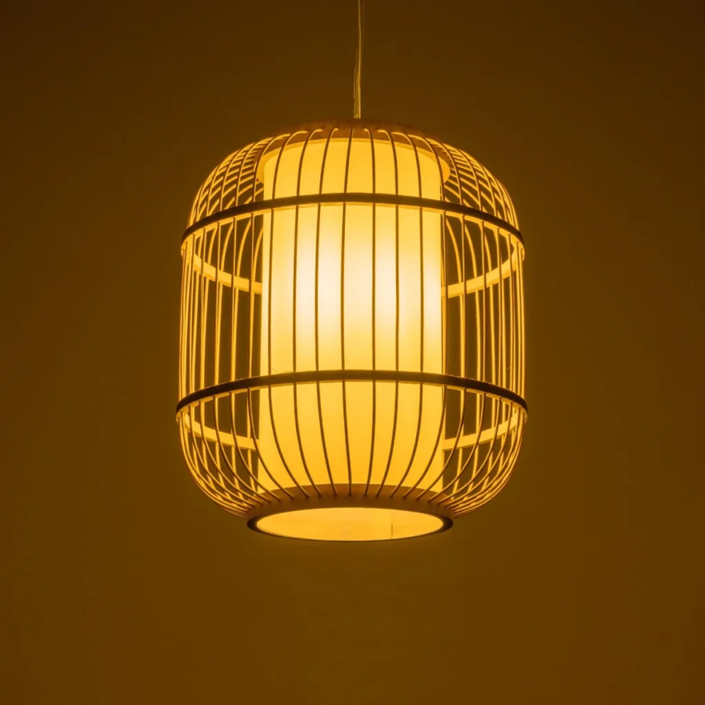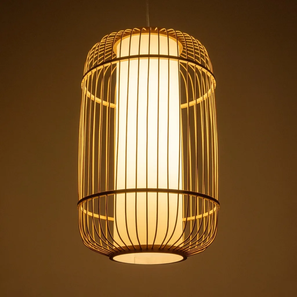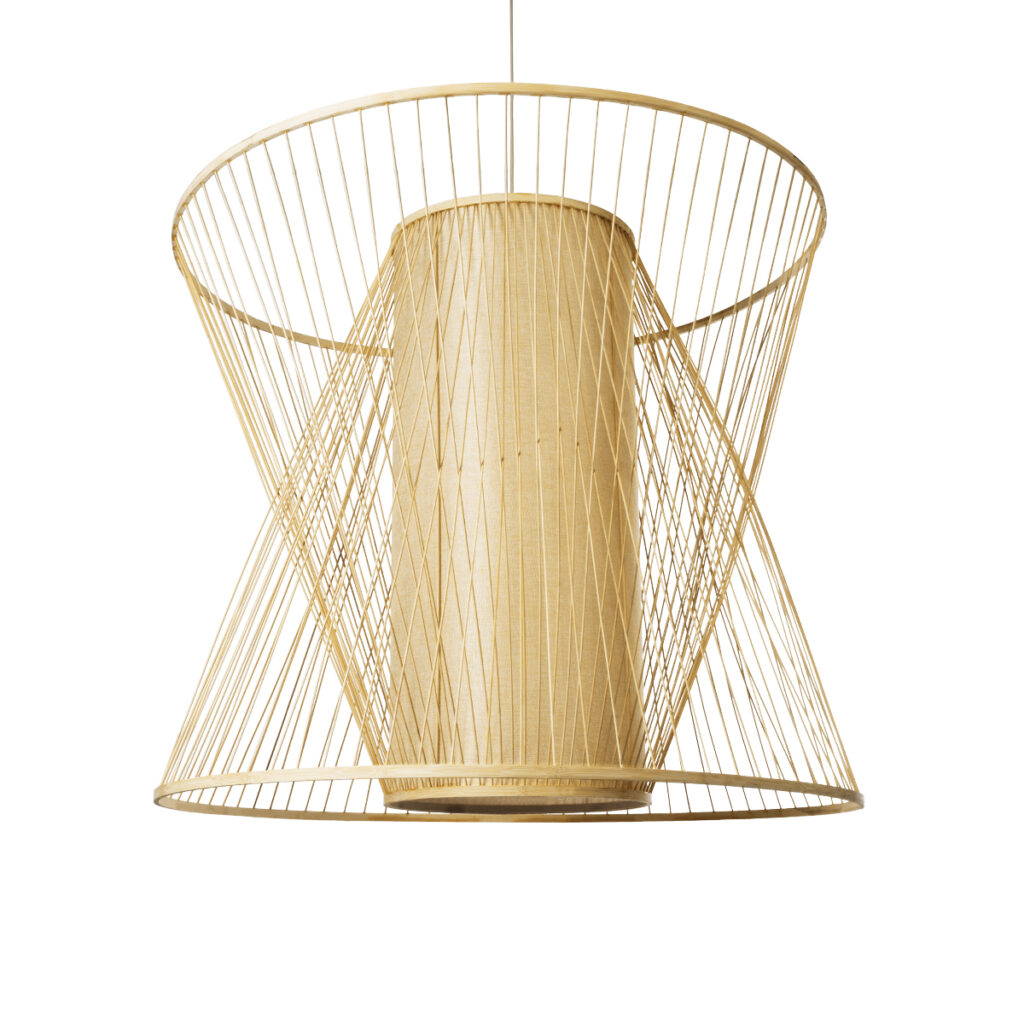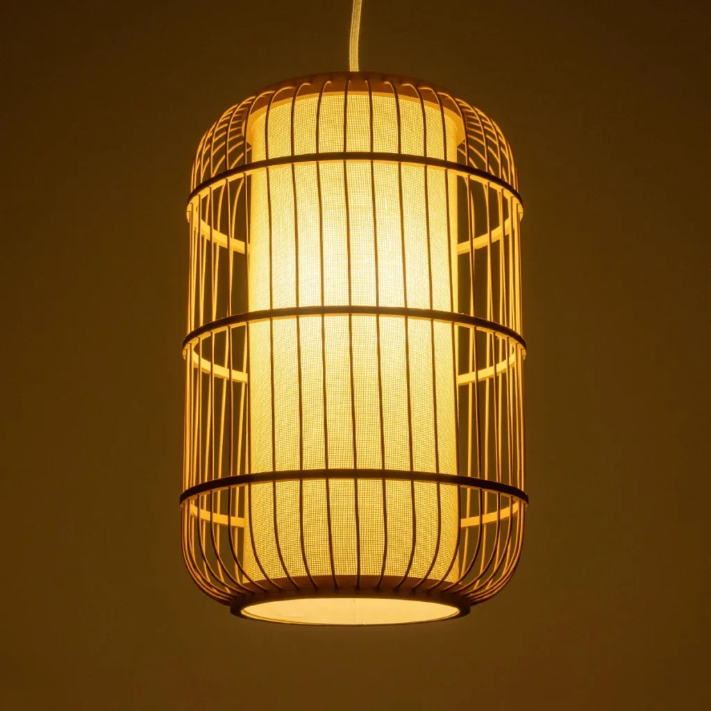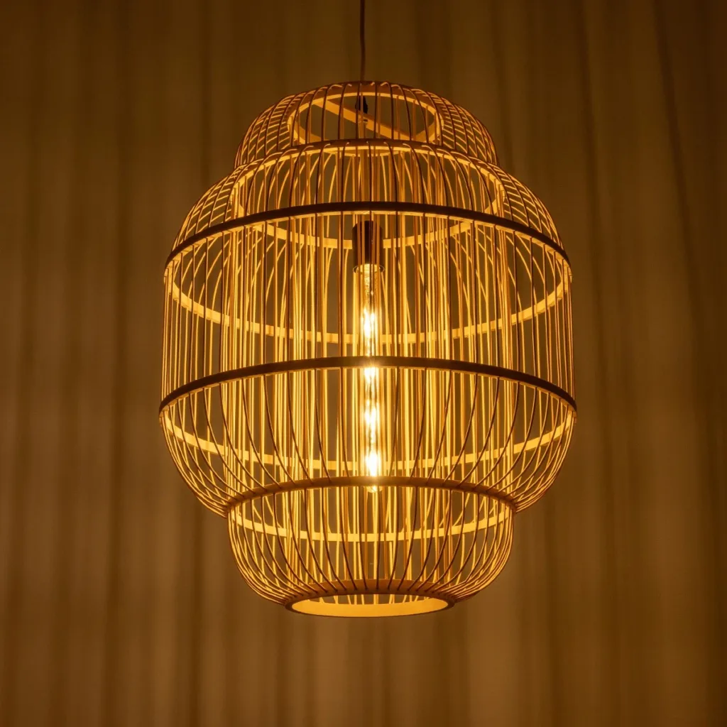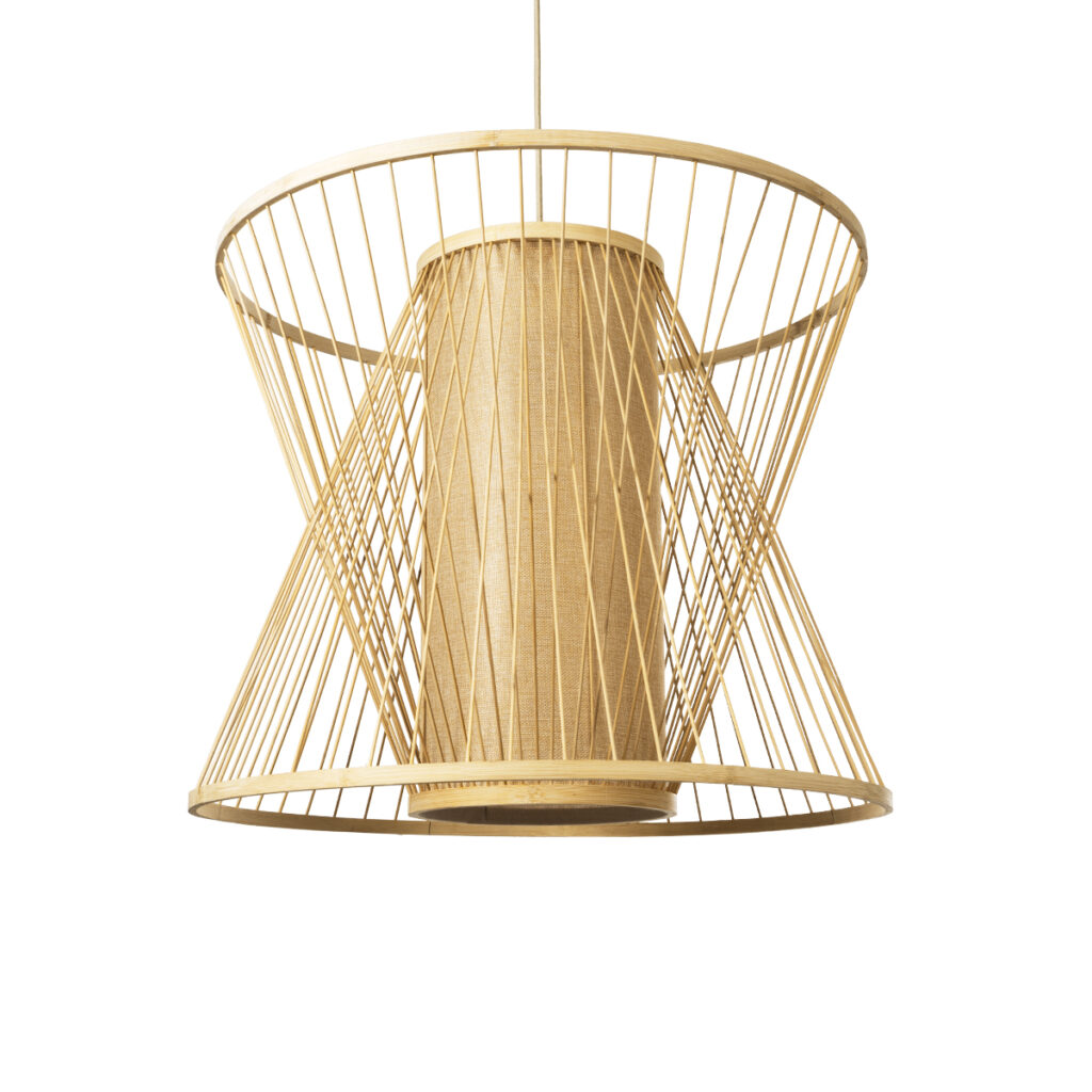 GloboStar® HIBISCUS 01783 Boho Κρεμαστό Φωτιστικό Πλέγμα Μονόφωτο 1 x E27 IP20 Μπεζ Ξύλο – Μ35 x Π35 x Υ150cm