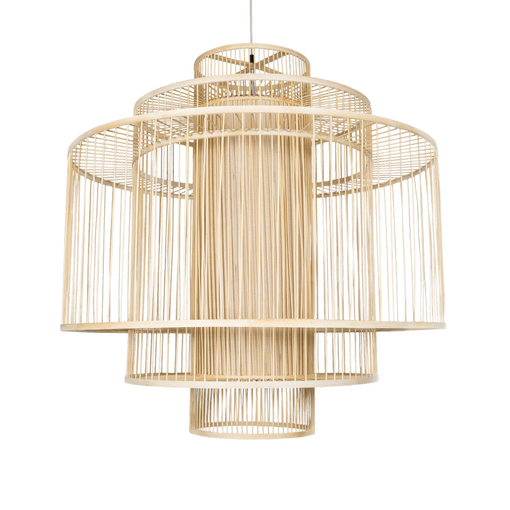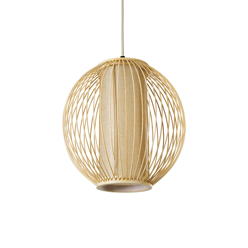 GloboStar® HIBISCUS 00893 Boho Κρεμαστό Φωτιστικό Ανάρτηση Μονόφωτο 1 x E27 IP20 Μπεζ Ξύλο – Μ25 x Π25 x Υ42cm