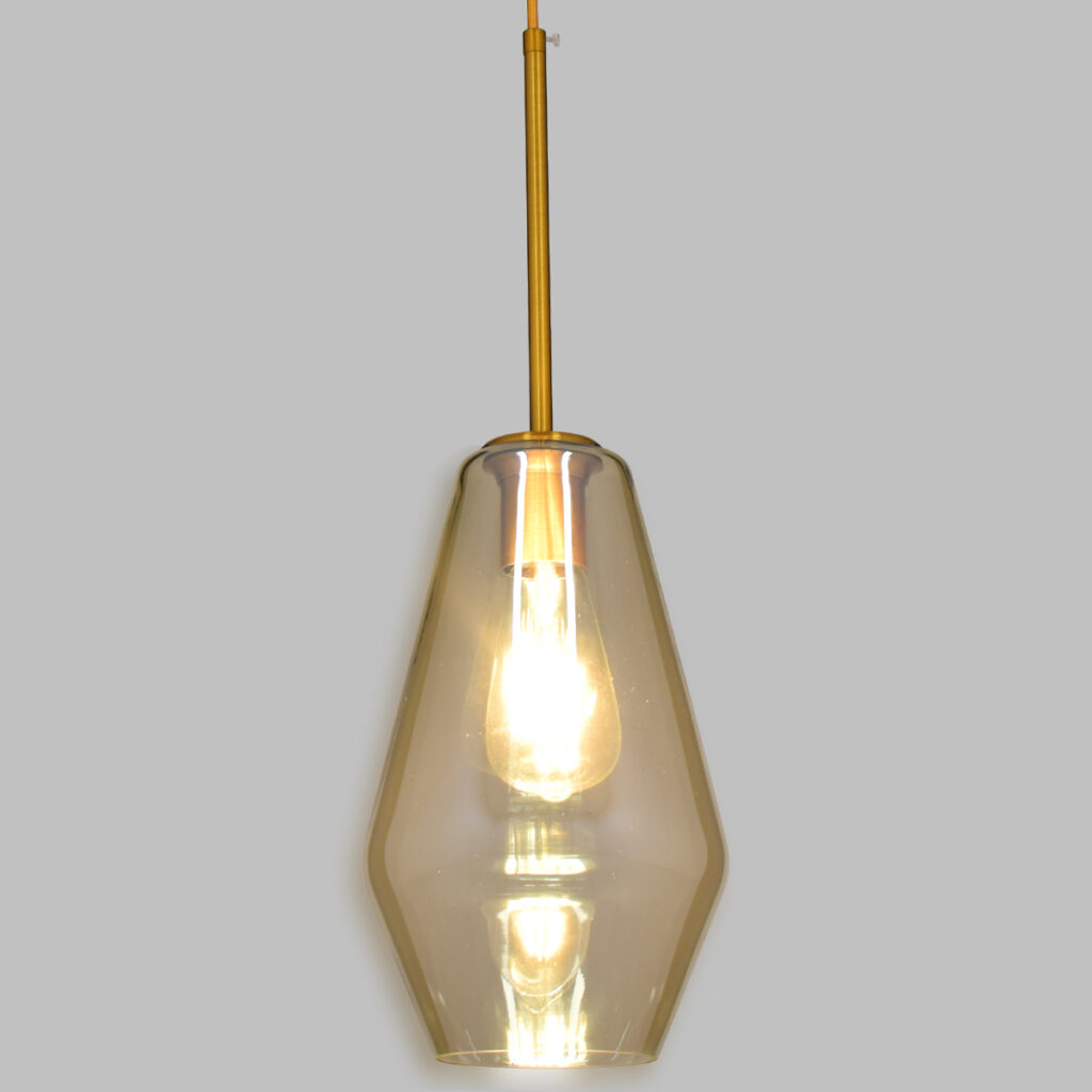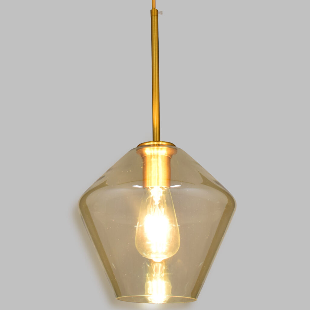 GloboStar® AMARIS 00869 Μοντέρνο Κρεμαστό Φωτιστικό Ανάρτηση Μονόφωτο 1 x E27 IP20 Μελί Γυαλί με Χρυσό Μέταλλο – Μ22 x Π22 x Y22cm