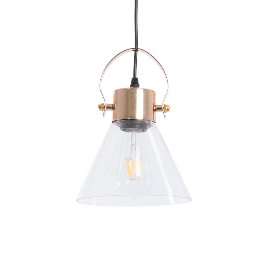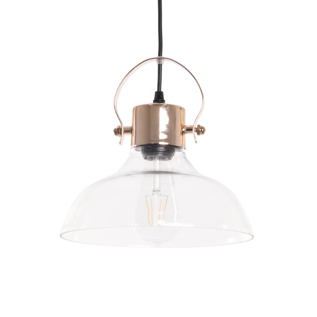 GloboStar® JAVER 00933 Vintage Κρεμαστό Φωτιστικό Καμπάνα Μονόφωτο 1 x E27 IP20 Διάφανο Γυαλί με Χάλκινο Μέταλλο – Μ24.5 x Π24.5 x Υ25cm