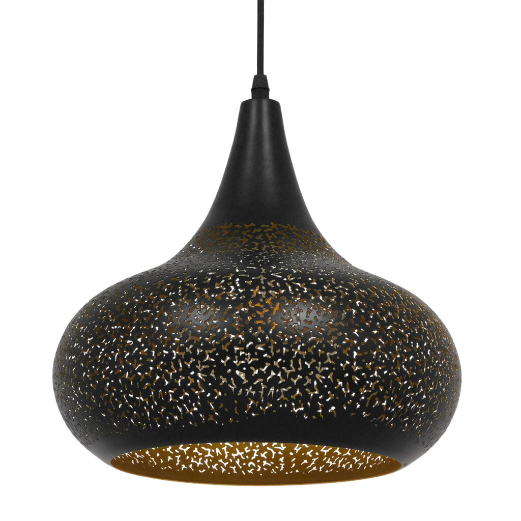GloboStar® JANIS 01590 Μοντέρνο Κρεμαστό Φωτιστικό Καμπάνα Μονόφωτο 1 x E27 IP20 Μαύρο & Χρυσό Μέταλλο – Μ30 x Π30 x Υ30cm