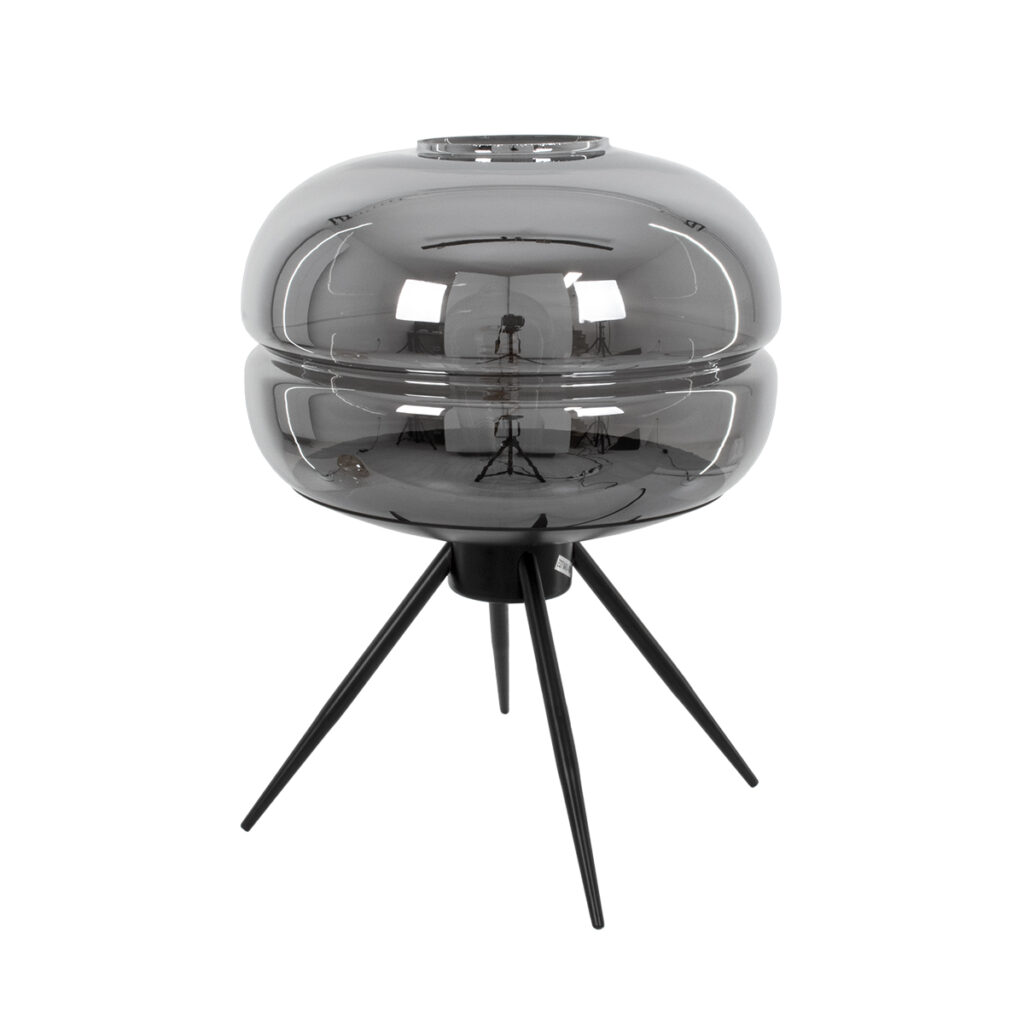 GloboStar® JAVAN 00738 Μοντέρνο Επιτραπέζιο Φωτιστικό Πορτατίφ Λαμπατέρ Μονόφωτο Φιμέ Νίκελ Γυάλινο Μαύρο Μεταλλικό Φ30 x Υ19cm