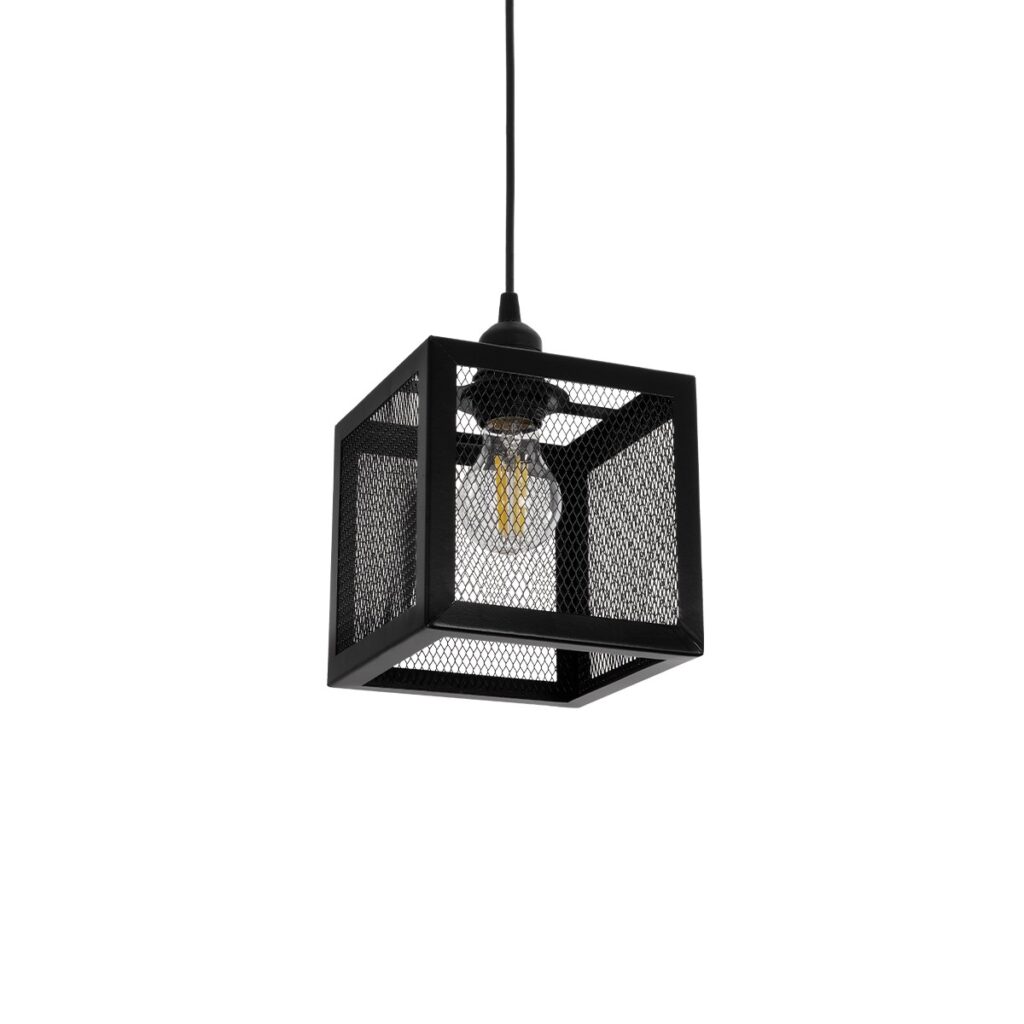 GloboStar® JAULA 204-0181 Μοντέρνο Κρεμαστό Φωτιστικό Οροφής Μονόφωτο 1 x E27 AC 220-240V IP20 Μαύρο – Μ17 x Π17 x Υ23cm