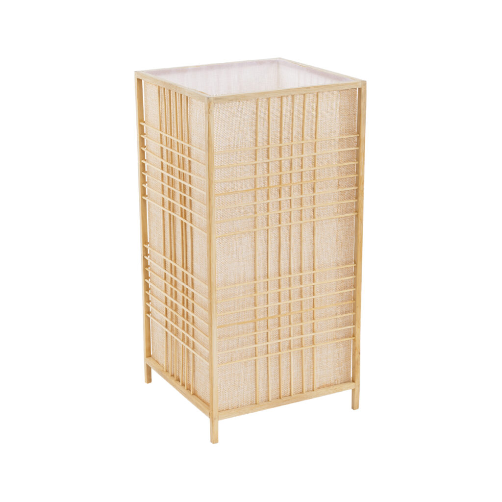 GloboStar® JUNIE 01997 Boho Επιτραπέζιο Φωτιστικό Πορτατίφ Μονόφωτο 1 x E27 AC220-240V IP20 – Μ20 x Π20 x Υ40cm – Μπεζ Ύφασμα με Μπεζ Ξύλινο Μπαμπού Πλέγμα