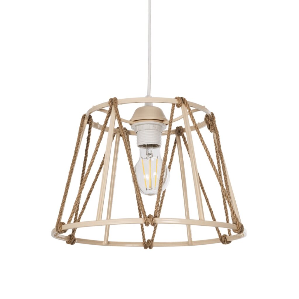 GloboStar® JUTE 203-0092 Μοντέρνο Κρεμαστό Φωτιστικό Σχοινί Μονόφωτο 1 x E27 IP20 Μπεζ Μεταλλό με Μπεζ Σχοινί – Μ30 x Π30 x Υ23cm