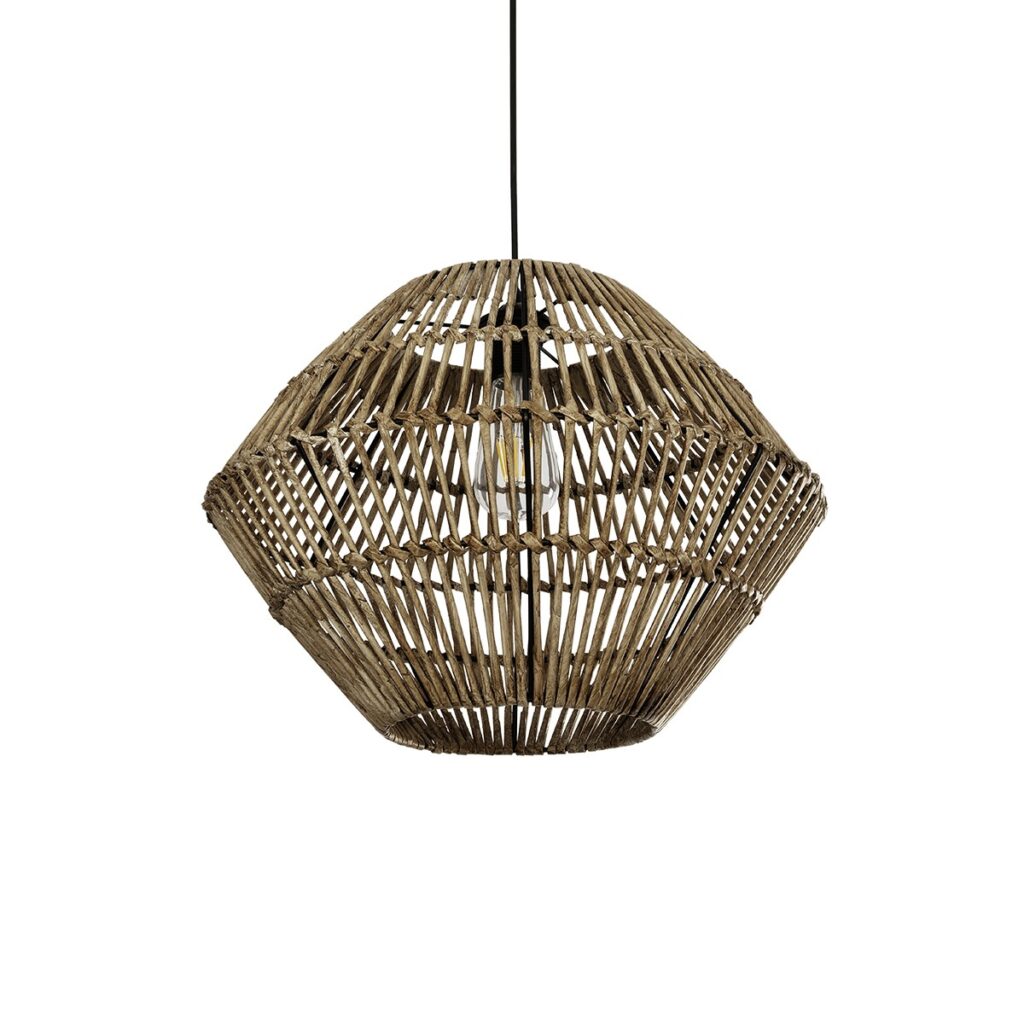 GloboStar® KAZEMI 02018 Μοντέρνο Κρεμαστό Φωτιστικό Πλέγμα Μονόφωτο 1 x E27 IP20 Μαύρο Μέταλλο με Μπεζ Σχοινί – Μ18 x Π18 x Υ17cm