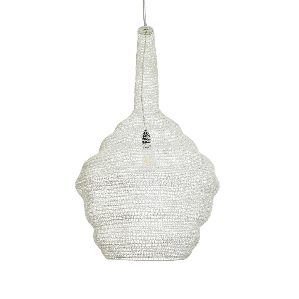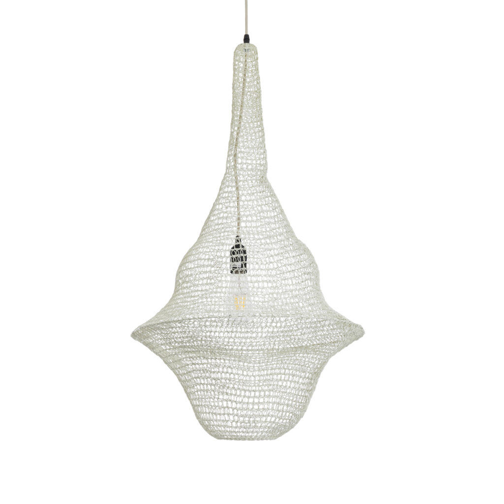 GloboStar® KENTUCKY 01889 Vintage Κρεμαστό Φωτιστικό Πλέγμα Μονόφωτο 1 x E27 IP20 Λευκό Μέταλλο – Μ50 x Π50 x Υ48cm