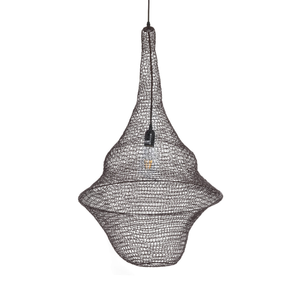 GloboStar® KENTUCKY 01875 Vintage Κρεμαστό Φωτιστικό Πλέγμα Μονόφωτο 1 x E27 IP20 Καφέ Μέταλλο – Μ50 x Π50 x Υ90cm