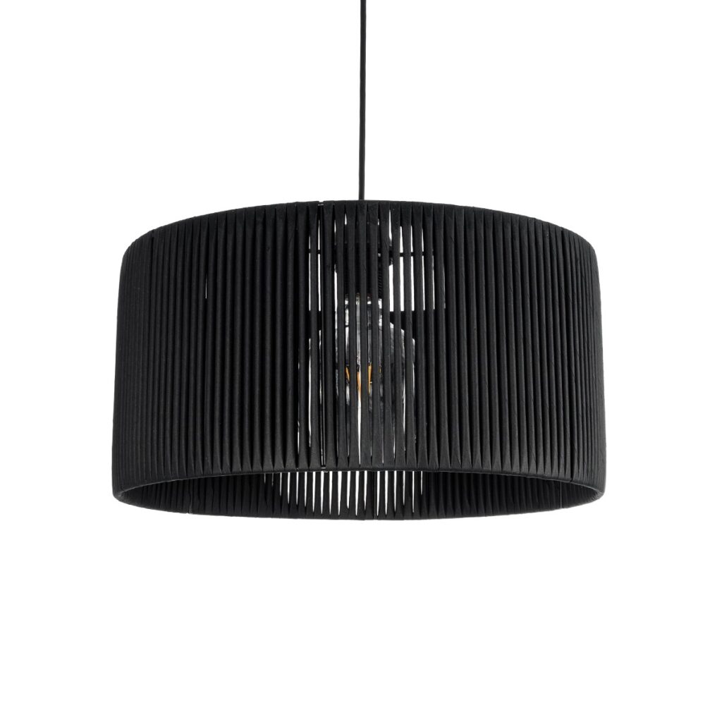 GloboStar® KYCLOS 203-0046 Boho Κρεμαστό Φωτιστικό Καπέλο Μονόφωτο 1 x E27 IP20 Μαύρο Rattan – M55 x Π55 x Υ20cm