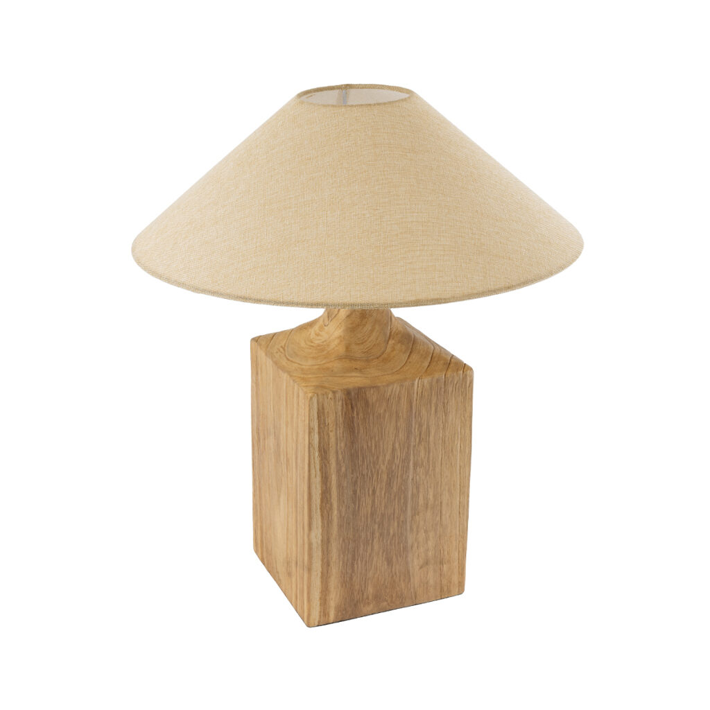 GloboStar® LAFRONTERA 02313 Boho Επιτραπέζιο Φωτιστικό Μονόφωτο 1 x E27 AC220-240V IP20 – Φ50 x Υ60cm – Μπεζ Ξύλινο Καμπάνα