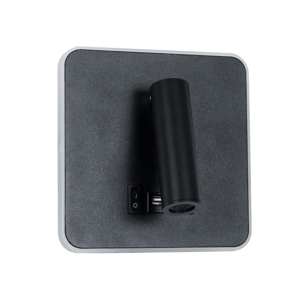 GloboStar® LADY-O 61365 Μοντέρνο Φωτιστικό Τοίχου – Απλίκα Ξενοδοχείου Bed Side LED 10W 1000lm 36° & 360° AC 220-240V – Reading Light & Κρυφός Φωτισμός – Φορτιστής USB 3A – Μ10.5 x Π10 x Υ18.5cm – Φυσικό Λευκό 4500K – Γκρι Ανθρακί – 3 Χρόνια Εγγύηση