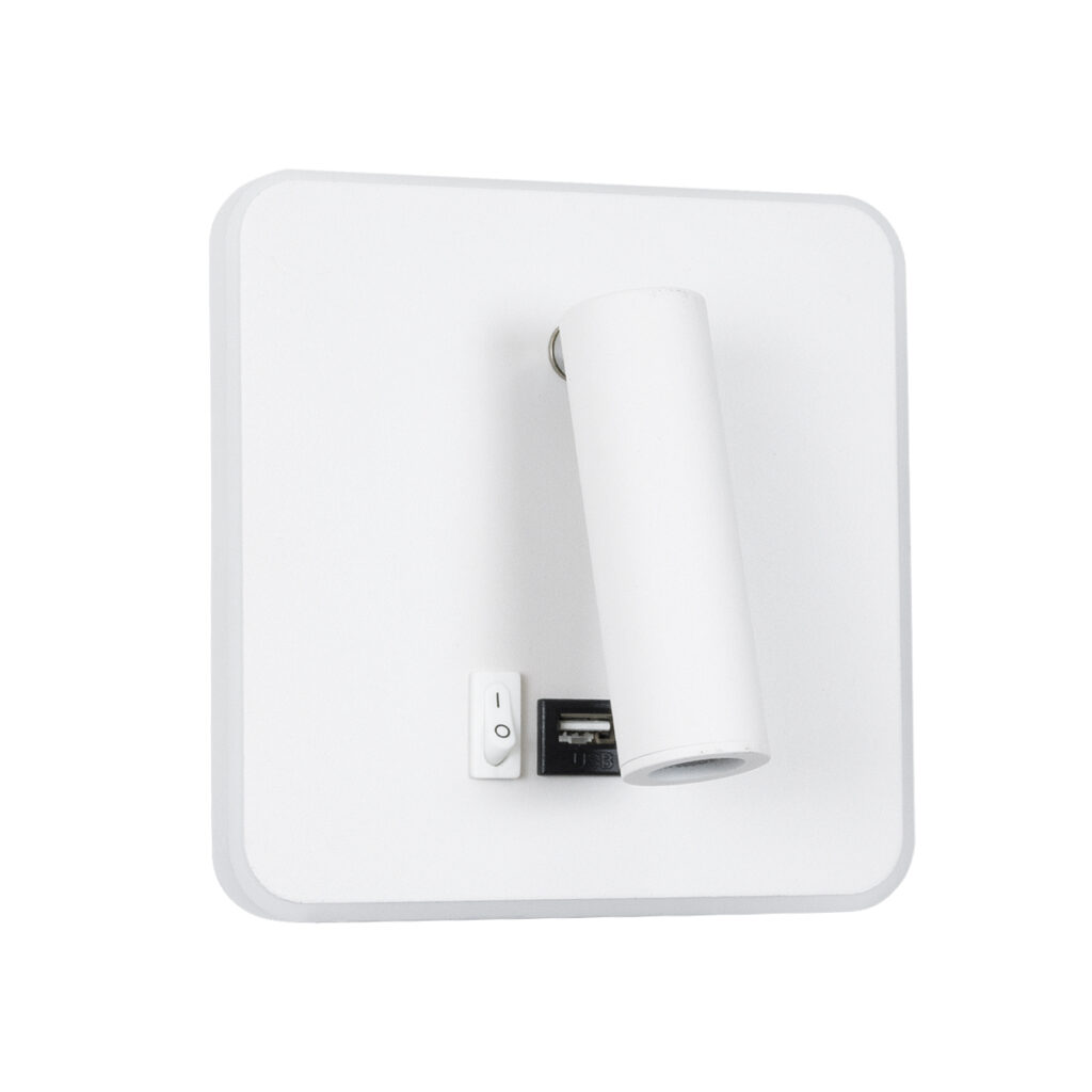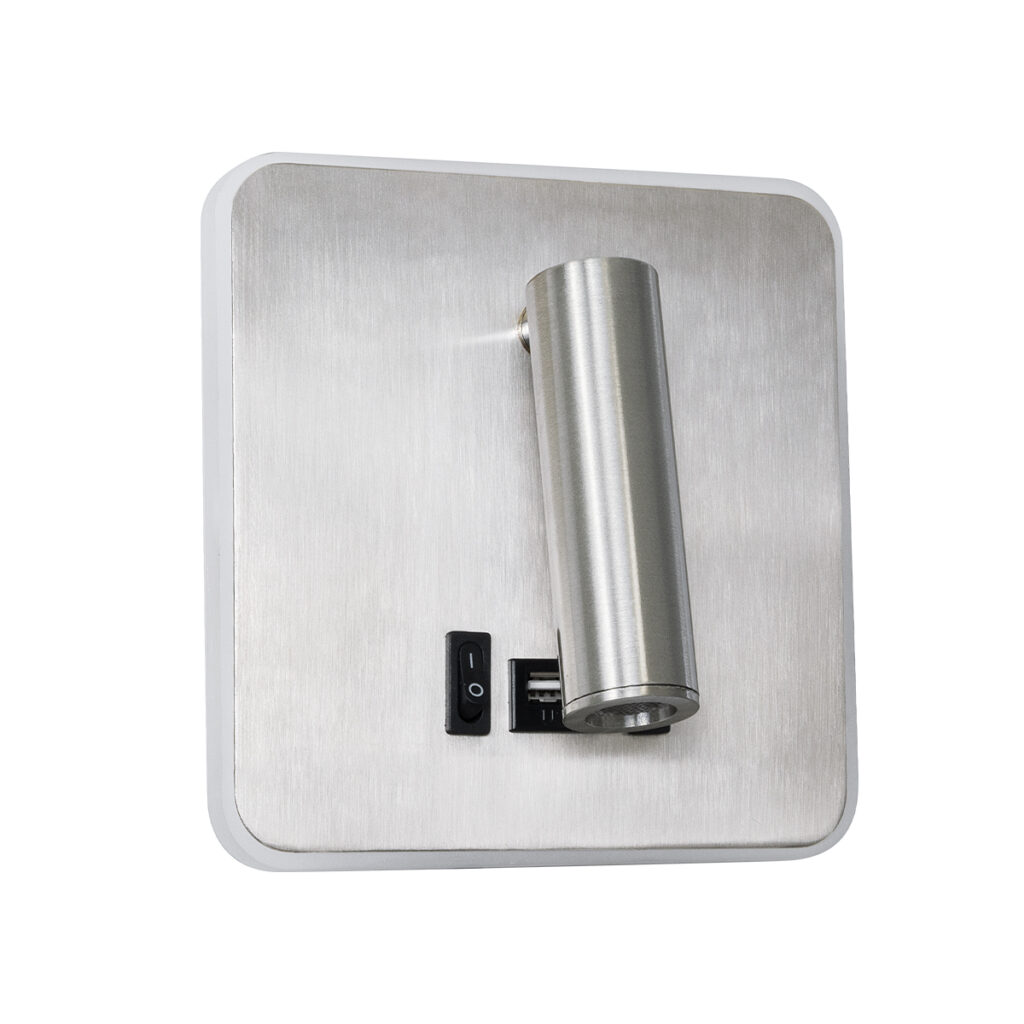 GloboStar® LADY-S 60945 Μοντέρνο Φωτιστικό Τοίχου – Απλίκα Ξενοδοχείου Bed Side LED 6W 600lm 36° & 360° AC 220-240V – Reading Light & Κρυφός Φωτισμός – Φορτιστής USB 3A – Μ15 x Π15 x Υ7cm – Φυσικό Λευκό 4500K – Νίκελ Βούρτσας- 3 Χρόνια Εγγύηση
