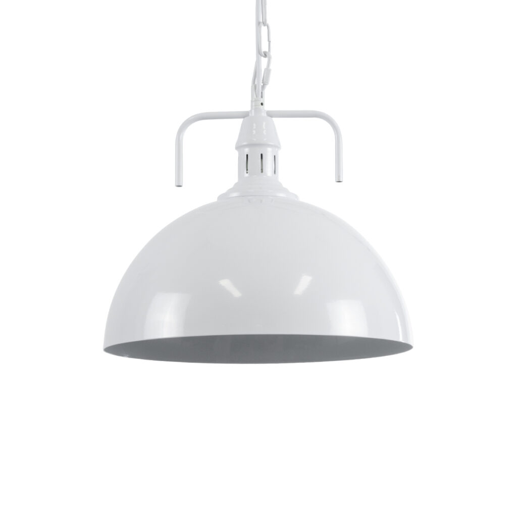 GloboStar® LARKIN 01174 Vintage Κρεμαστό Φωτιστικό Καμπάνα Μονόφωτο 1 x E27 IP20 Λευκό Μέταλλο – Μ30 x Π30 x Y28cm