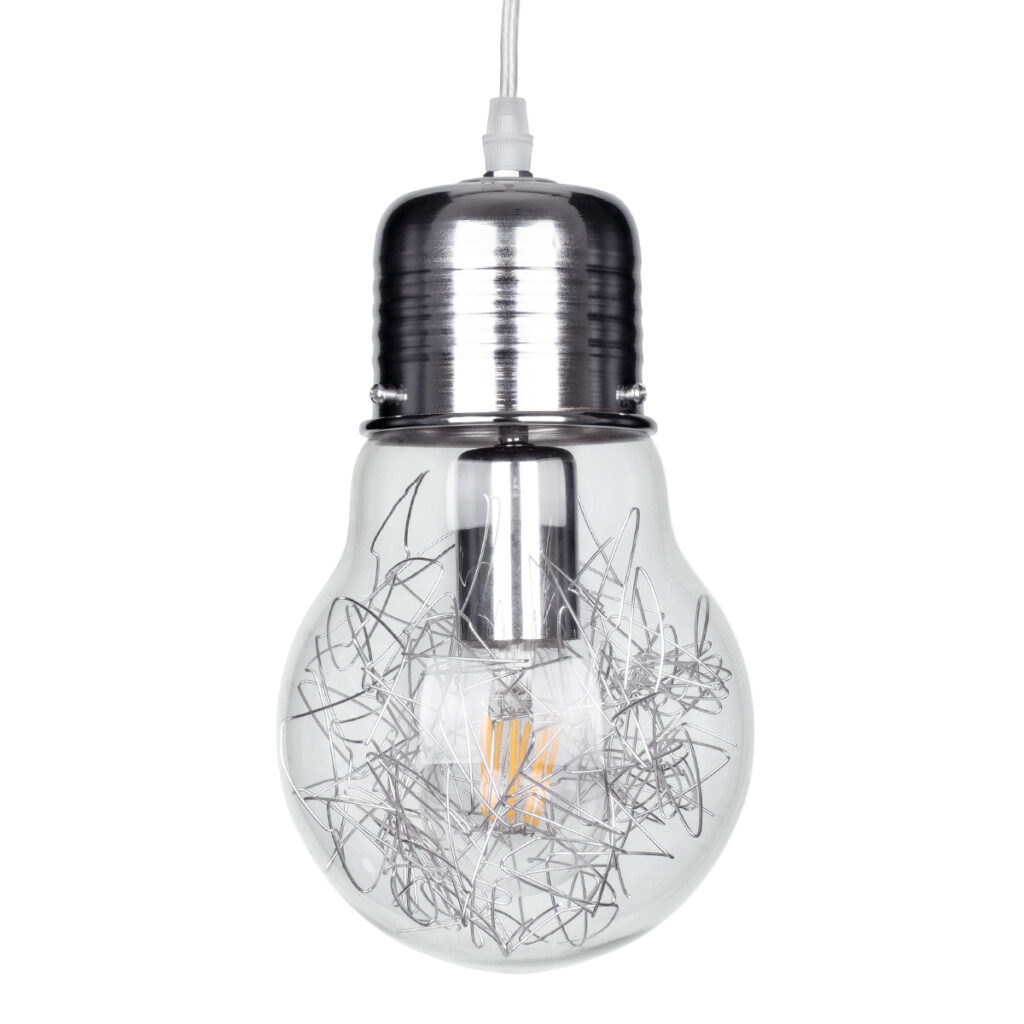 GloboStar® LAMP 01676 Μοντέρνο Κρεμαστό Φωτιστικό Φιγούρα Μονόφωτο 1 x E27 IP20 Ασημί Μέταλλο με Διάφανο Γυαλί – Μ15 x Π15 x Υ27cm
