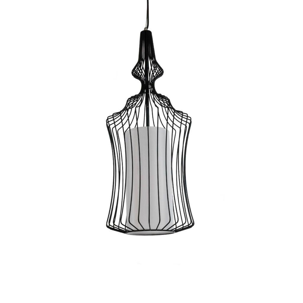 GloboStar® LILY 01559 Vintage Κρεμαστό Φωτιστικό Πλέγμα Μονόφωτο 1 x E27 IP20 Μαύρο Μέταλλο με Λευκό Ύφασμα – Μ25 x Π25 x Υ61cm