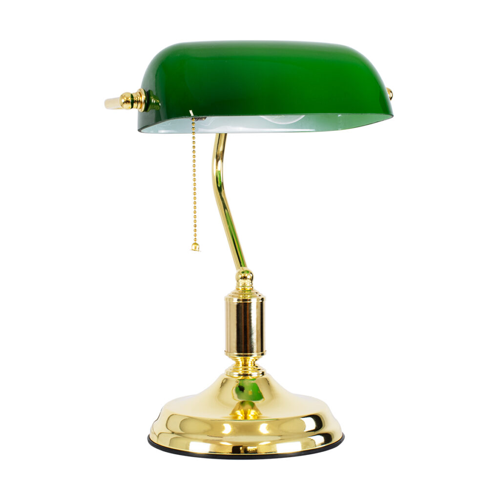 GloboStar® LIBRARY 01391 Vintage Επιτραπέζιο Φωτιστικό Πορτατίφ Μονόφωτο Χρυσό Μεταλλικό με Γυαλίνο Πράσινο Καπέλο Μ26.5 x Π19 x Υ38cm