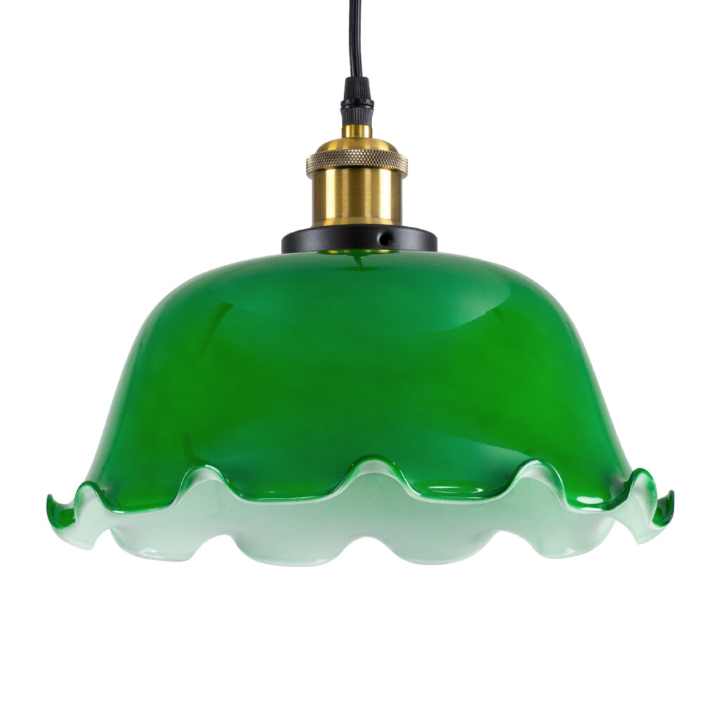 GloboStar® LIBRARY 00768 Vintage Κρεμαστό Φωτιστικό Καμπάνα Μονόφωτο 1 x E27 IP20 Πράσινο & Λευκό Γυαλί με Χρυσό & Μαύρο Μέταλλο – Μ18 x Π18 x Y18cm