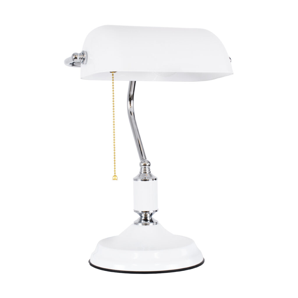 GloboStar® LIBRARY 01390 Vintage Επιτραπέζιο Φωτιστικό Πορτατίφ Μονόφωτο Μεταλλικό Χρώμιο Νίκελ με Λευκό Καπέλο Μ26.5 x Π19 x Υ38cm