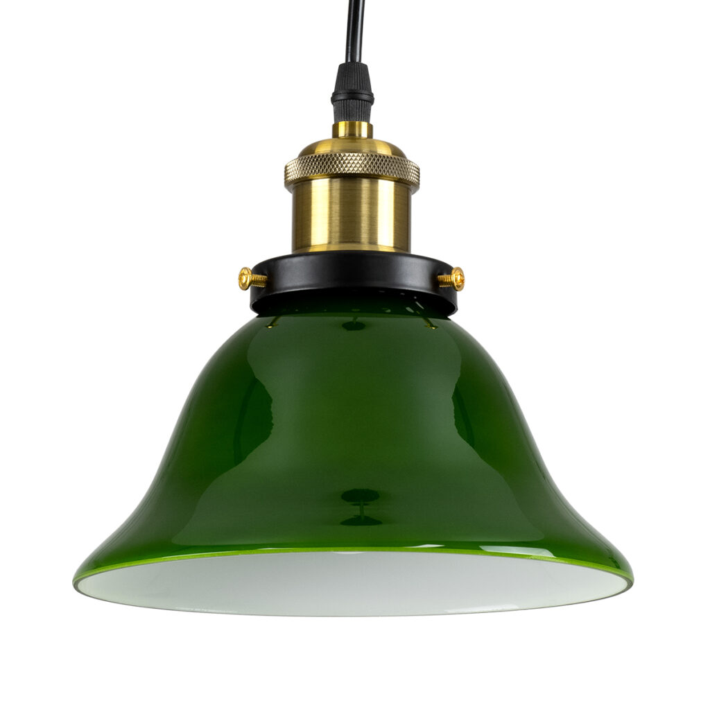 GloboStar® LIBRARY 00767 Vintage Κρεμαστό Φωτιστικό Καμπάνα Μονόφωτο 1 x E27 IP20 Πράσινο & Λευκό Γυαλί με Χρυσό & Μαύρο Μέταλλο – Μ26 x Π26 x Y20cm