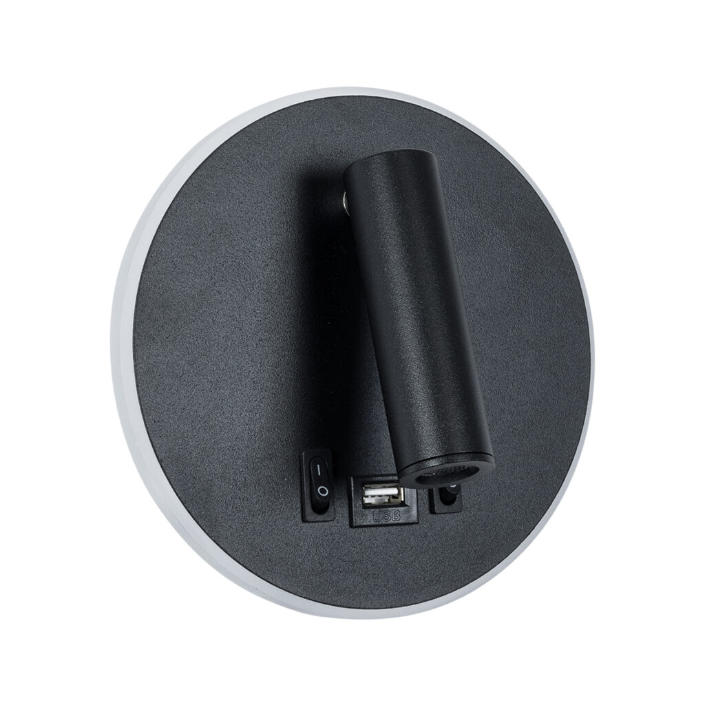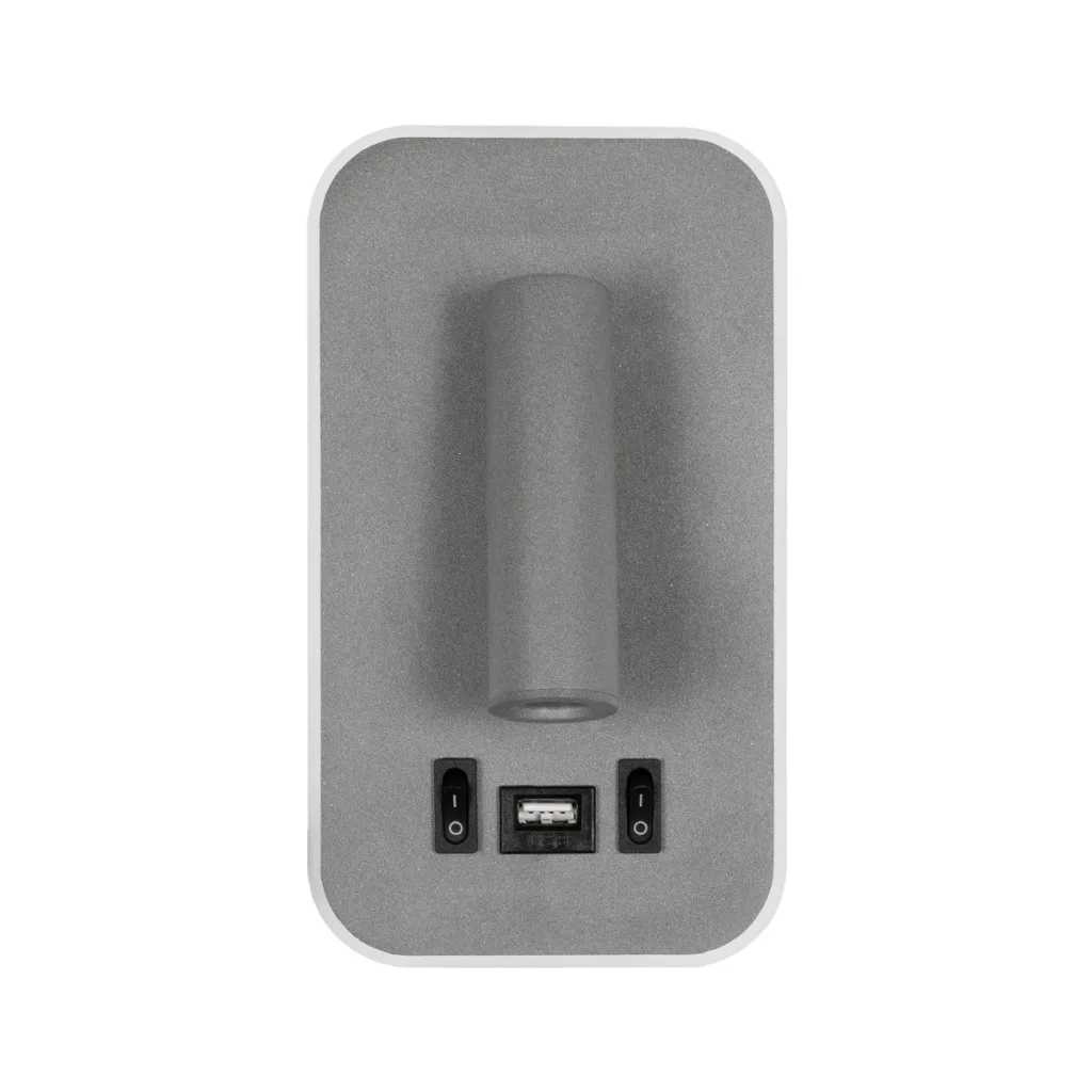 GloboStar® LADY-O 61365 Μοντέρνο Φωτιστικό Τοίχου – Απλίκα Ξενοδοχείου Bed Side LED 10W 1000lm 36° & 360° AC 220-240V – Reading Light & Κρυφός Φωτισμός – Φορτιστής USB 3A – Μ10.5 x Π10 x Υ18.5cm – Φυσικό Λευκό 4500K – Γκρι Ανθρακί – 3 Χρόνια Εγγύηση