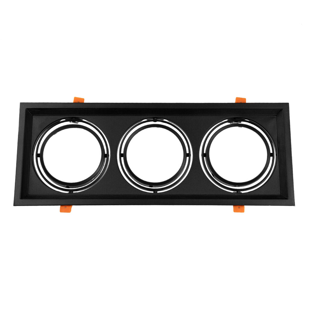 GloboStar® VITA 77857 Χωνευτό Κινούμενο Τριπλο Τετράγωνο Σποτ Οροφής για Λάμπα AR111 – IP20 – Χυτό Αλουμίνιο – M48.7 x Π18.7 x Y5.5cm – Μαύρο – 5 Χρόνια Εγγύηση