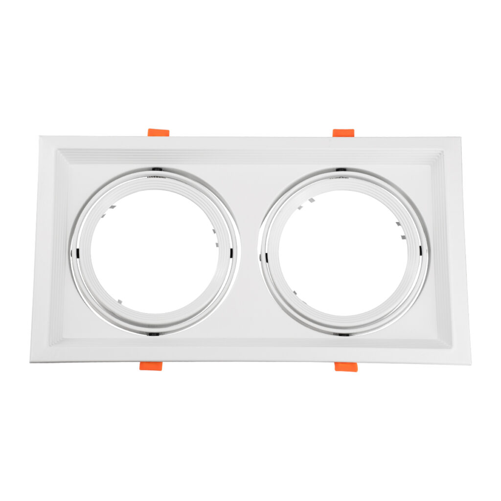 GloboStar® VITA 77854 Χωνευτό Κινούμενο Διπλό Τετράγωνο Σποτ Οροφής για Λάμπα AR111 – IP20 – Χυτό Αλουμίνιο – M33.5 x Π17.5 x Y5.5cm – Λευκό – 5 Χρόνια Εγγύηση