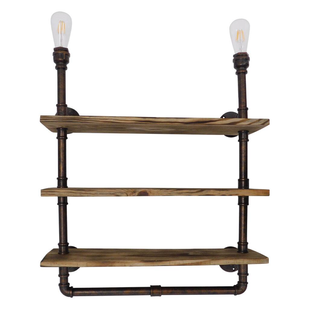 GloboStar® ENIMAS 01217 Vintage Επιτοίχιο Φωτιστικό Απλίκα Δίφωτο 2 x E27 IP20 Χάλκινο Μέταλλο με Μπεζ Ξύλο – Μ65 x Π23 x Υ76cm