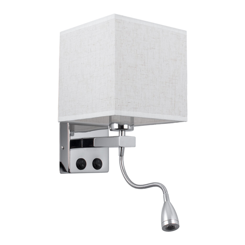 GloboStar® ELEGANT 01493 Μοντέρνο Επιτοίχιο Φωτιστικό Απλίκα με LED Βραχίονα Δίφωτο 1 x E27 IP20 Λευκό Ύφασμα με Ασημί Μέταλλο – Μ26.5 x Π15 x Υ43cm