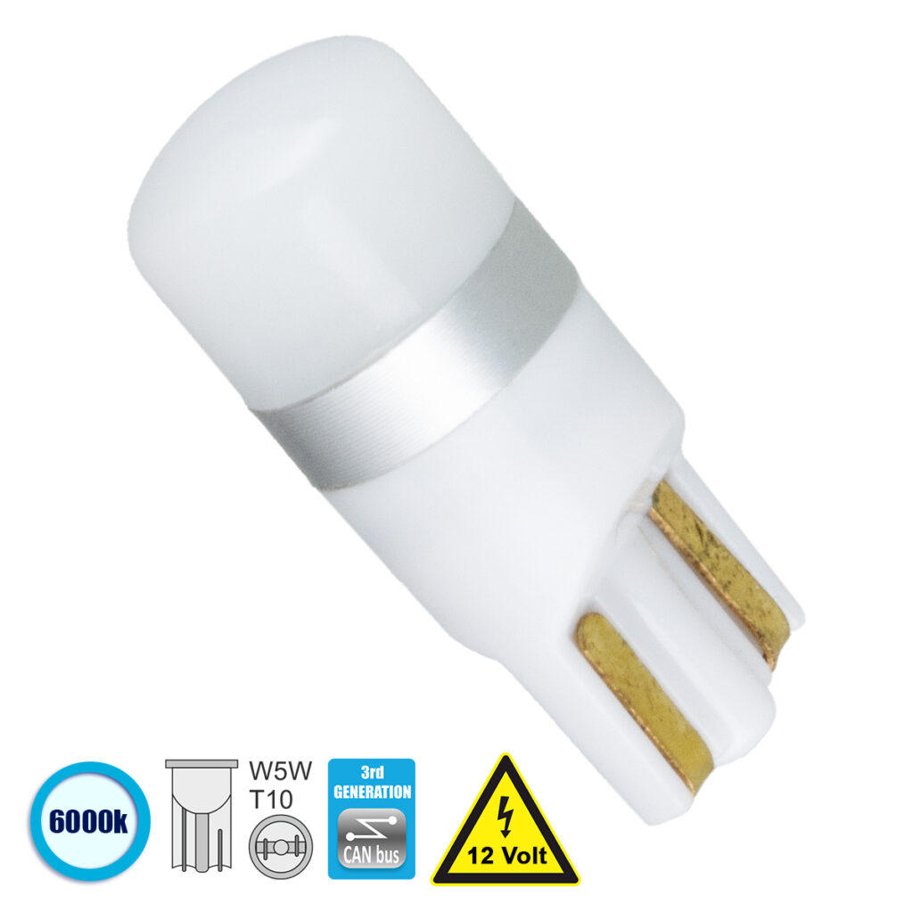 GloboStar® T10 W5W 81080 Λάμπα Αυτοκίνητου LED 2rd Generation Can-Bus Series 1xSMD5050 1.5W 150lm 120° DC 12-16V IP20 Φ1 x H2.2cm Ψυχρό Λευκό 6000K