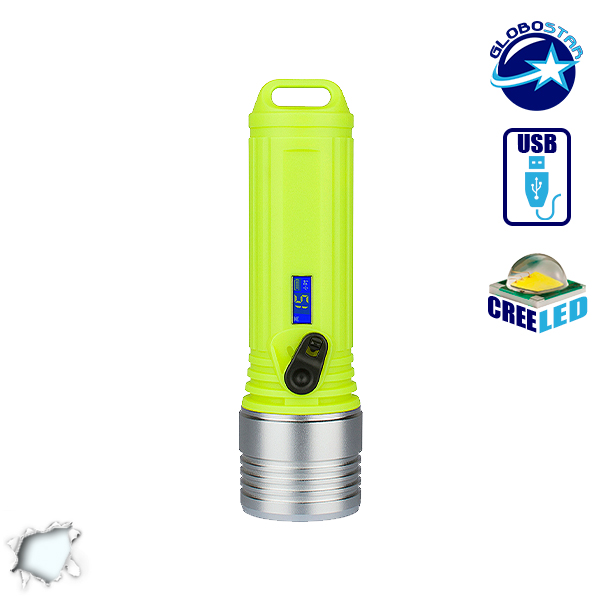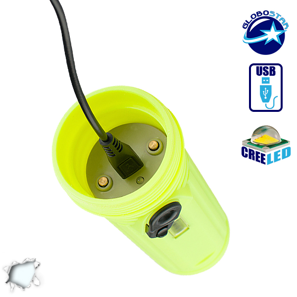 Αδιάβροχος Καταδυτικός Φακός Επαναφορτιζόμενος IP68 με 3 Μπαταρίες 18650 GloboStar 07009