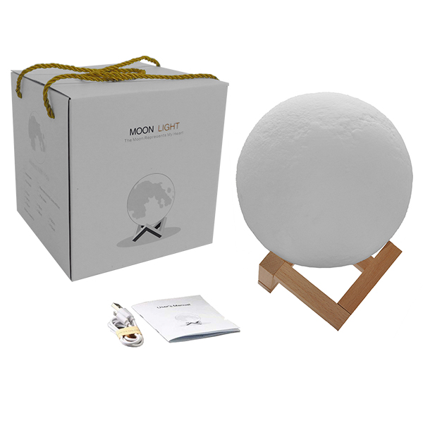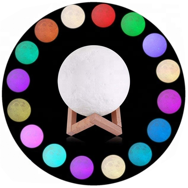 Επαναφορτιζόμενο Διακοσμητικό Ανάγλυφο Φωτιστικό Αφής 3D Moon 20cm RGBW Ντιμαριζόμενο με Ασύρματο Χειριστήριο GloboStar 07030