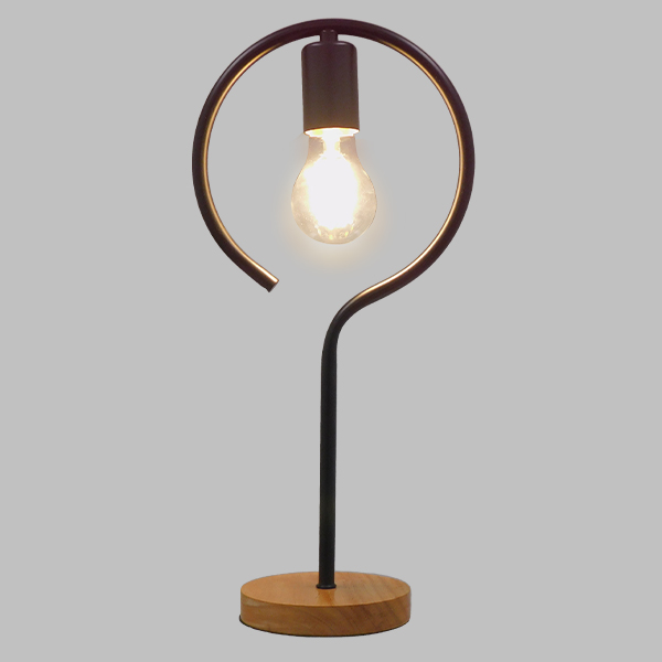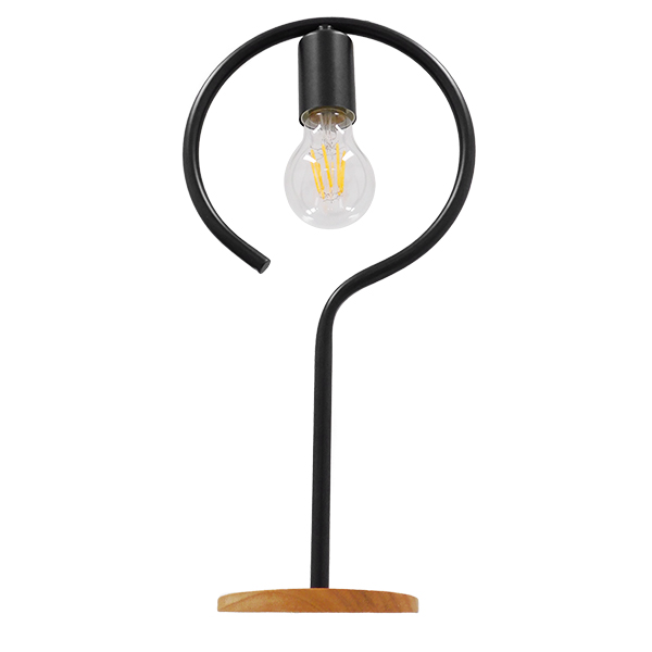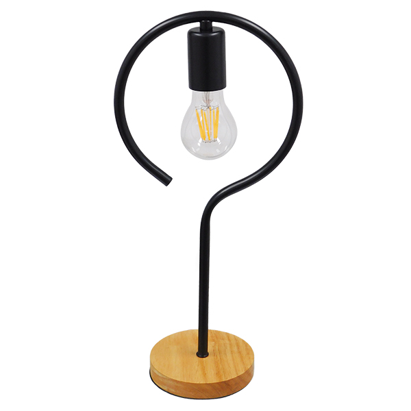 GloboStar® HONOR ROUND 01434 Μοντέρνο Επιτραπέζιο Φωτιστικό Πορτατίφ Μονόφωτο Μαύρο Μεταλλικό με Ξύλινη Βάση Δρυς Φ20 x Υ42cm