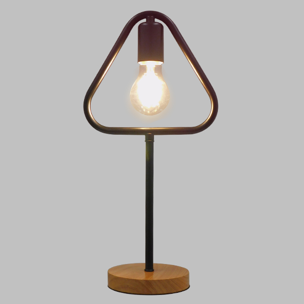 GloboStar® HONOR TRIANGLE 01436 Μοντέρνο Επιτραπέζιο Φωτιστικό Πορτατίφ Μονόφωτο Μαύρο Μεταλλικό με Ξύλινη Βάση Δρυς Μ20 x Π20 x Υ40cm